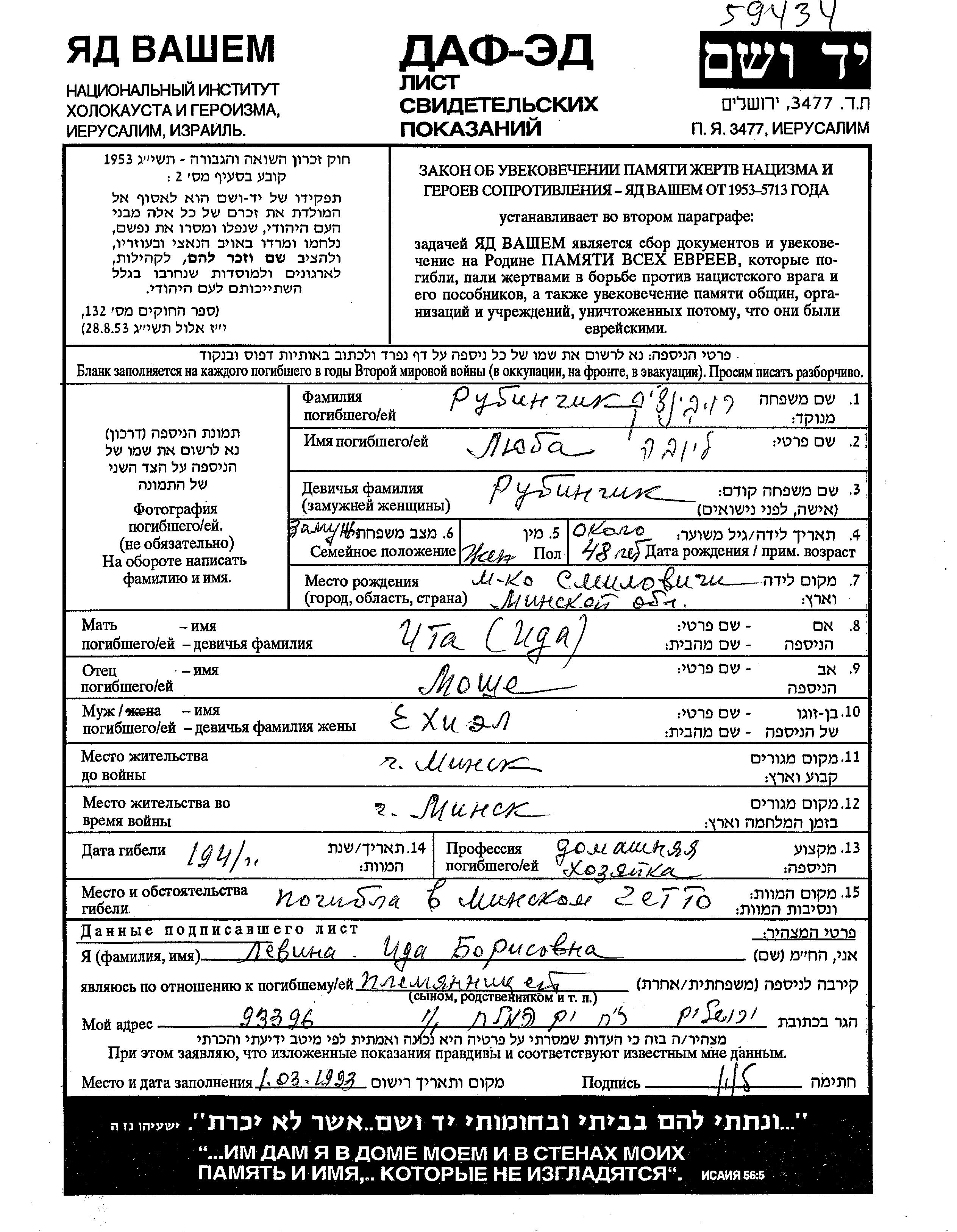 Яд Вашем - Листы свидетельских показаний Мемориального фонда