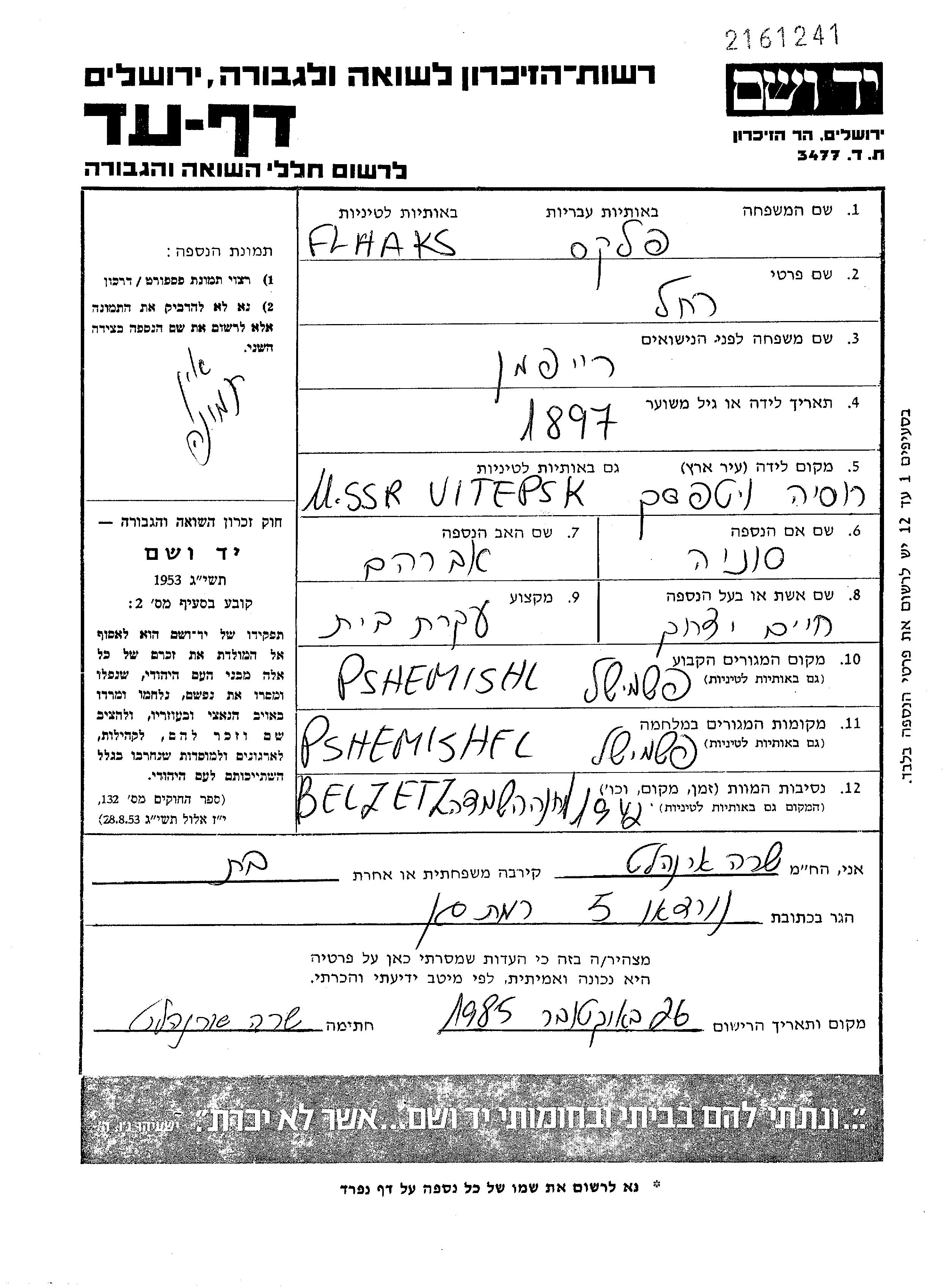Яд Вашем - Листы свидетельских показаний Мемориального фонда