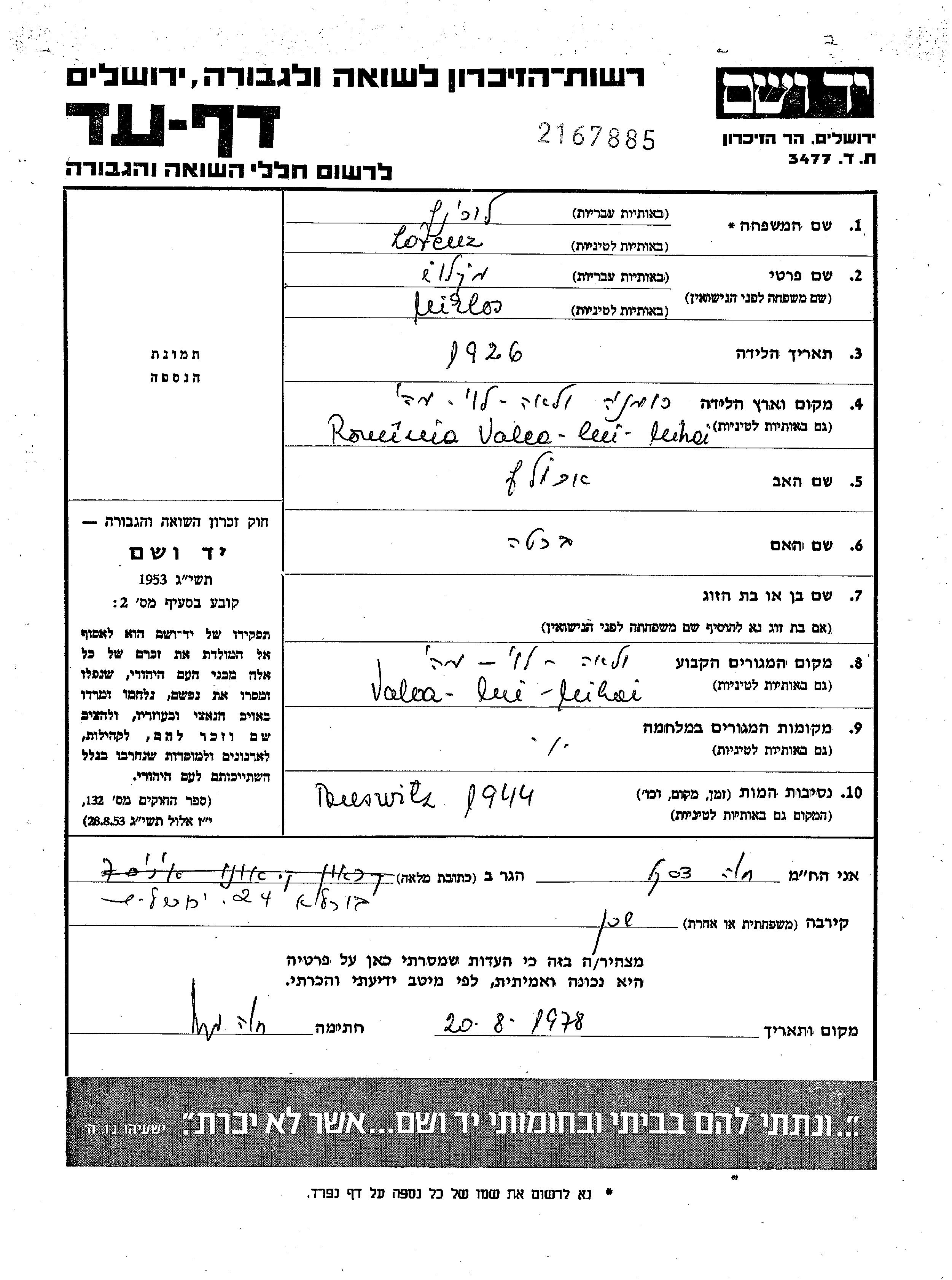 Яд Вашем - Листы свидетельских показаний Мемориального фонда