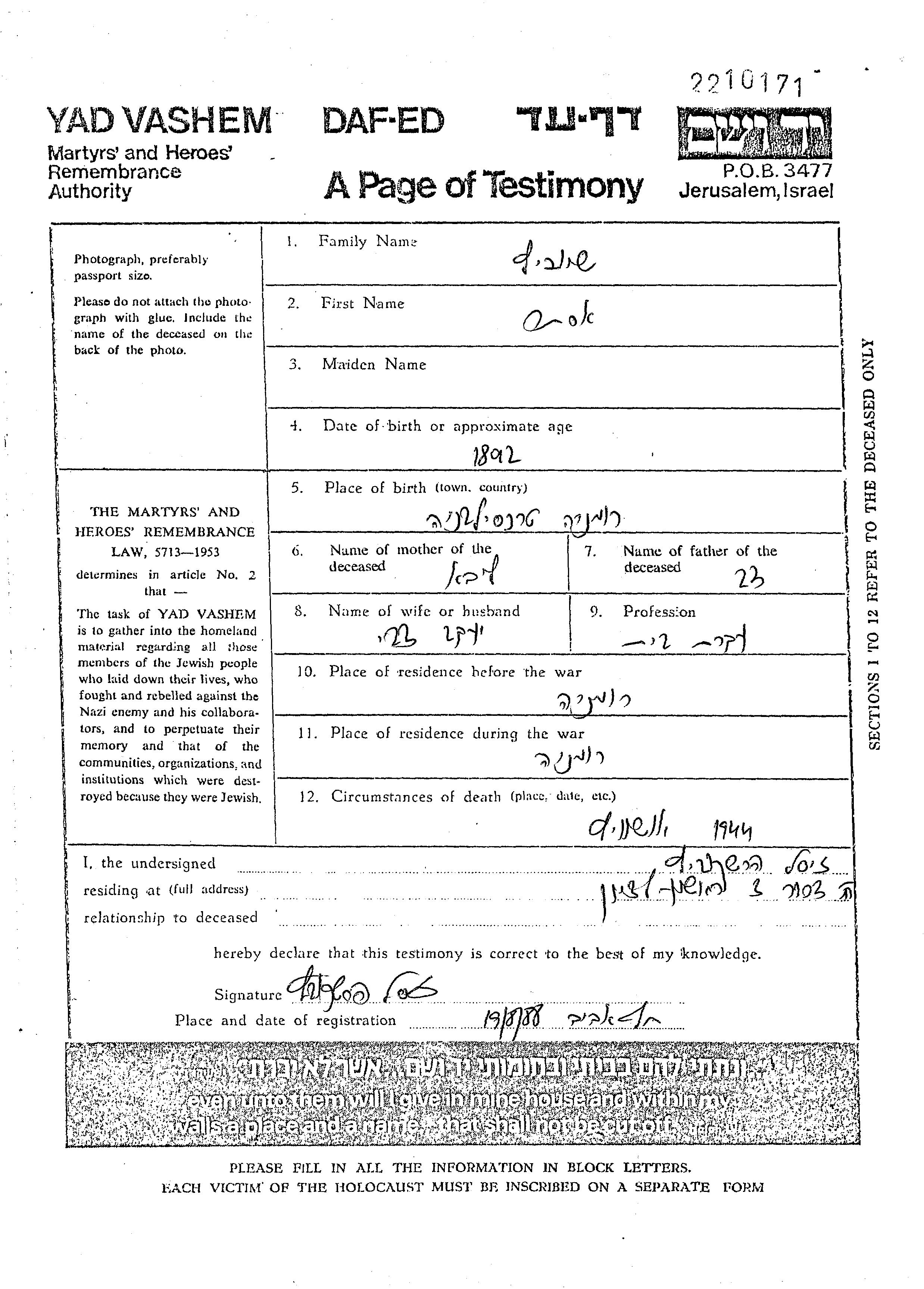 Яд Вашем - Листы свидетельских показаний Мемориального фонда