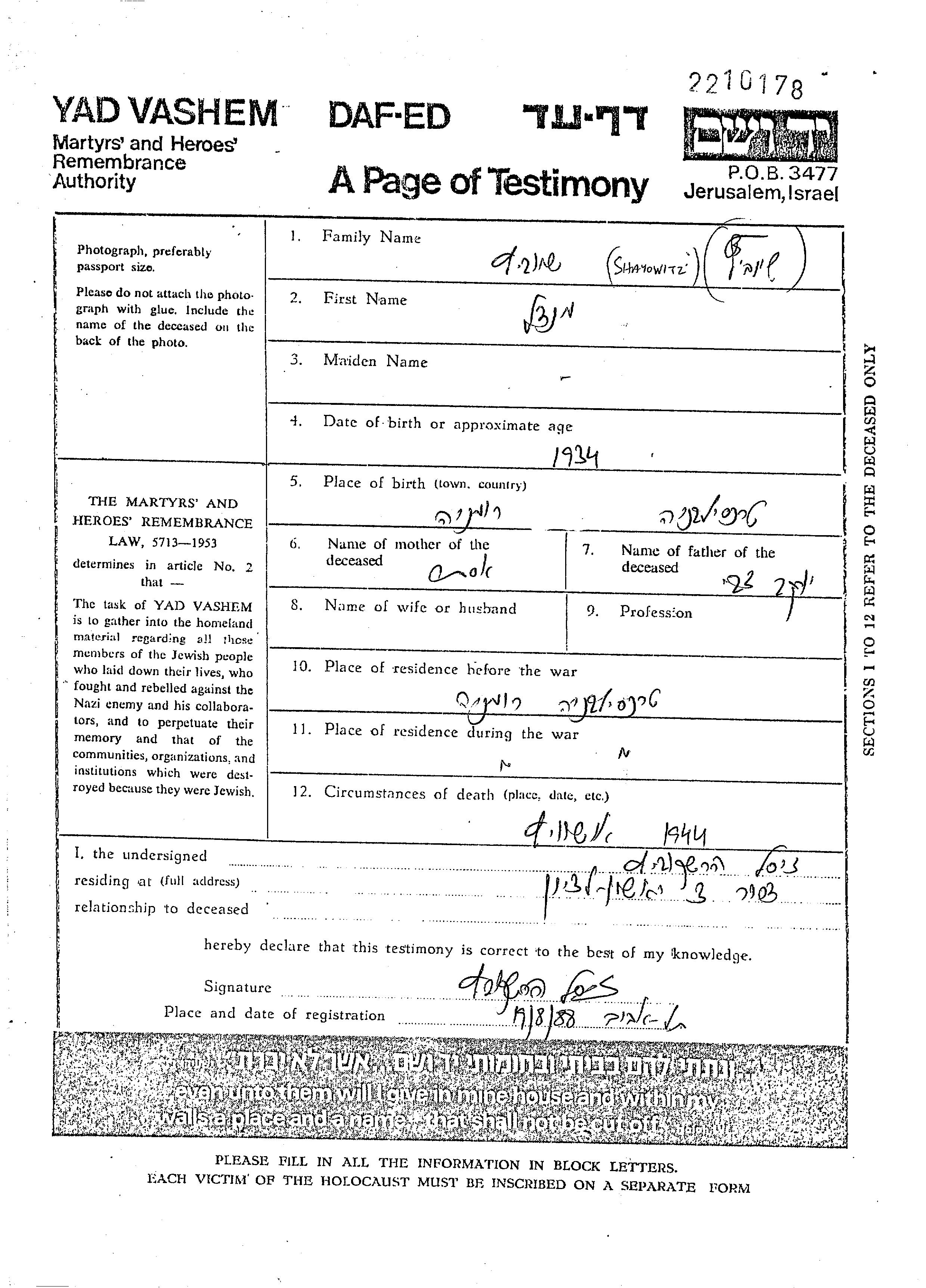 Яд Вашем - Листы свидетельских показаний Мемориального фонда