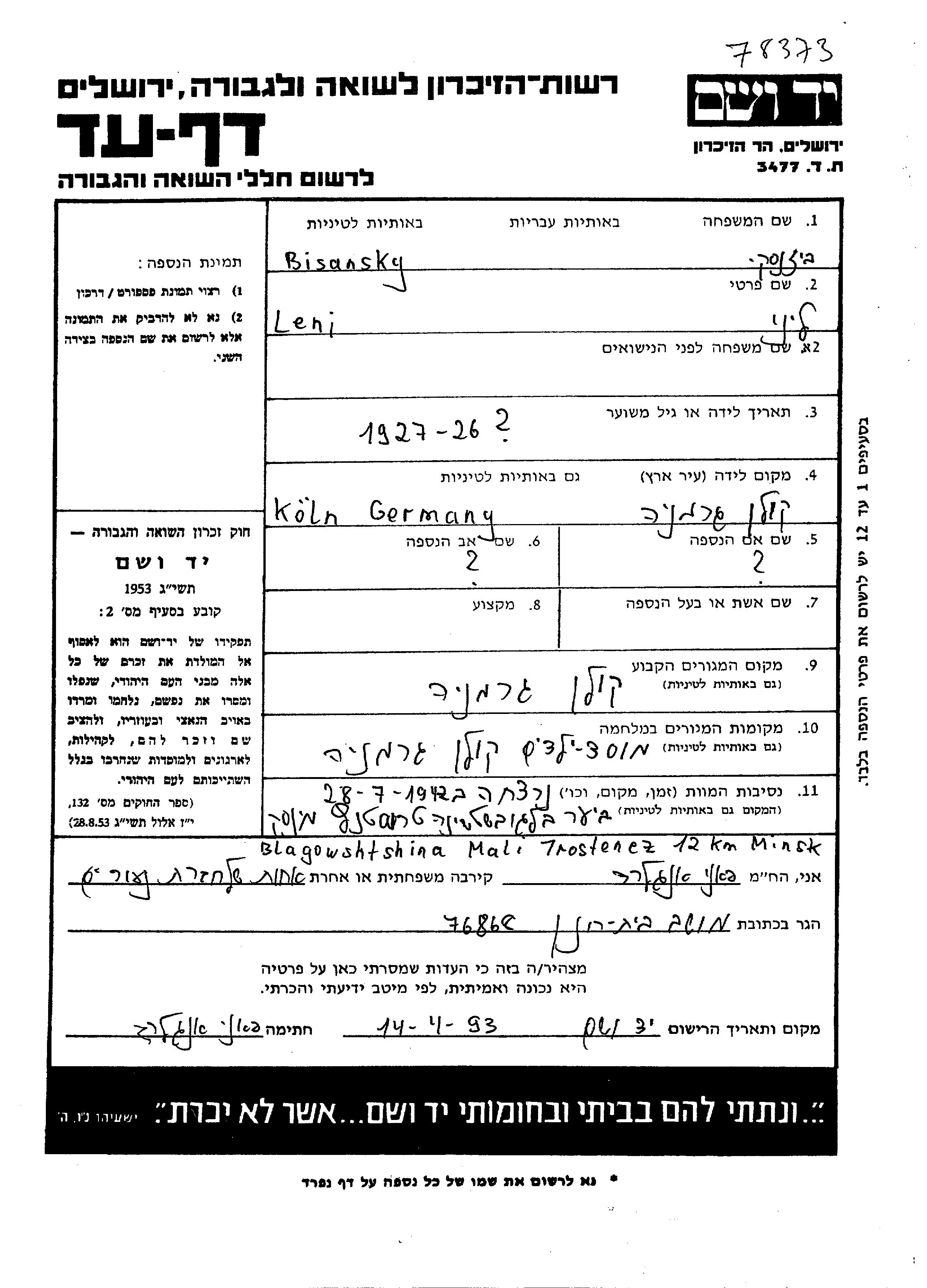 Яд Вашем - Листы свидетельских показаний Мемориального фонда