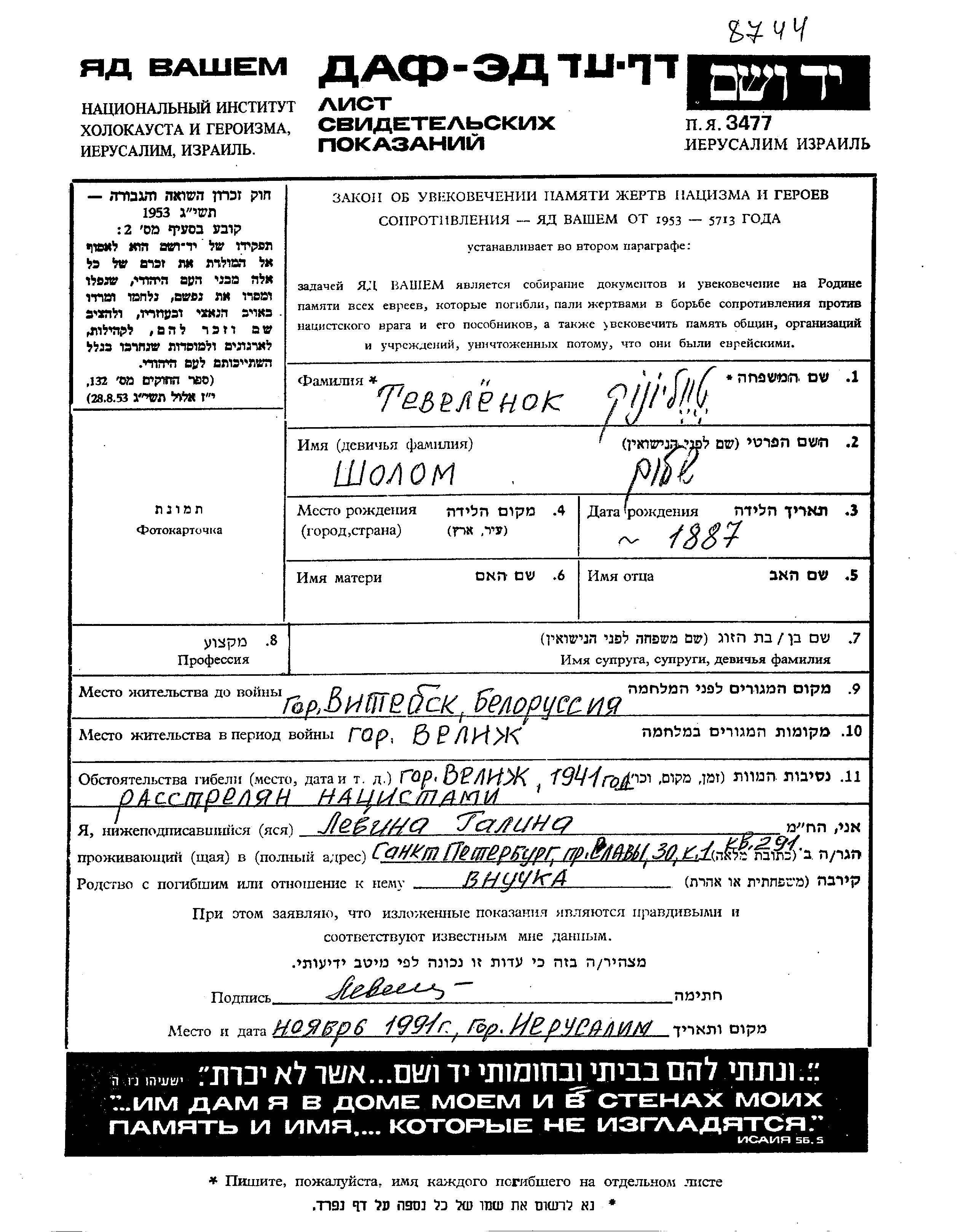 Поиск подателя Листа свидетельских показаний. Поиск по любому имени, включая уменьшительное или прозвище
