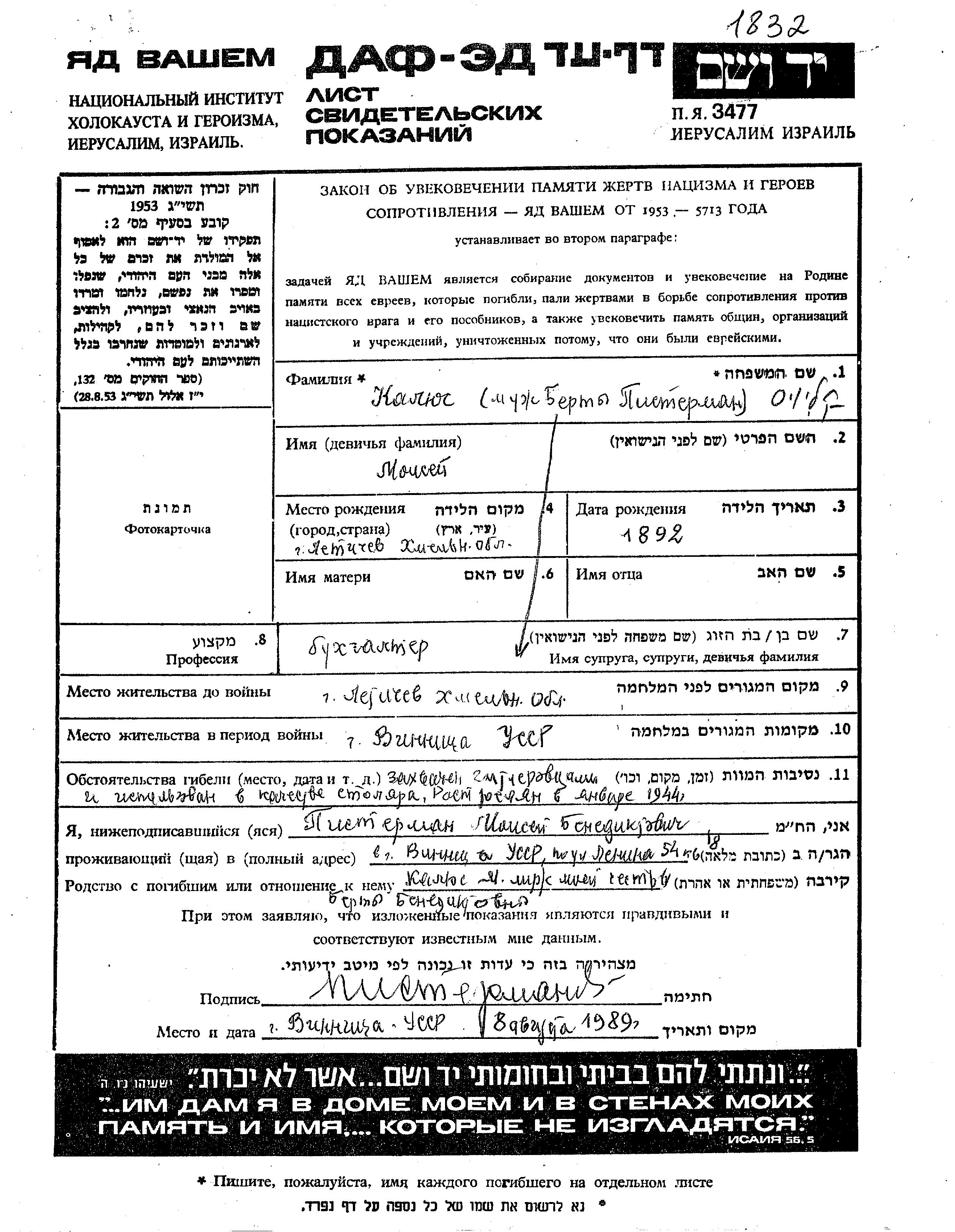 Поиск подателя Листа свидетельских показаний. Поиск по любому имени, включая уменьшительное или прозвище