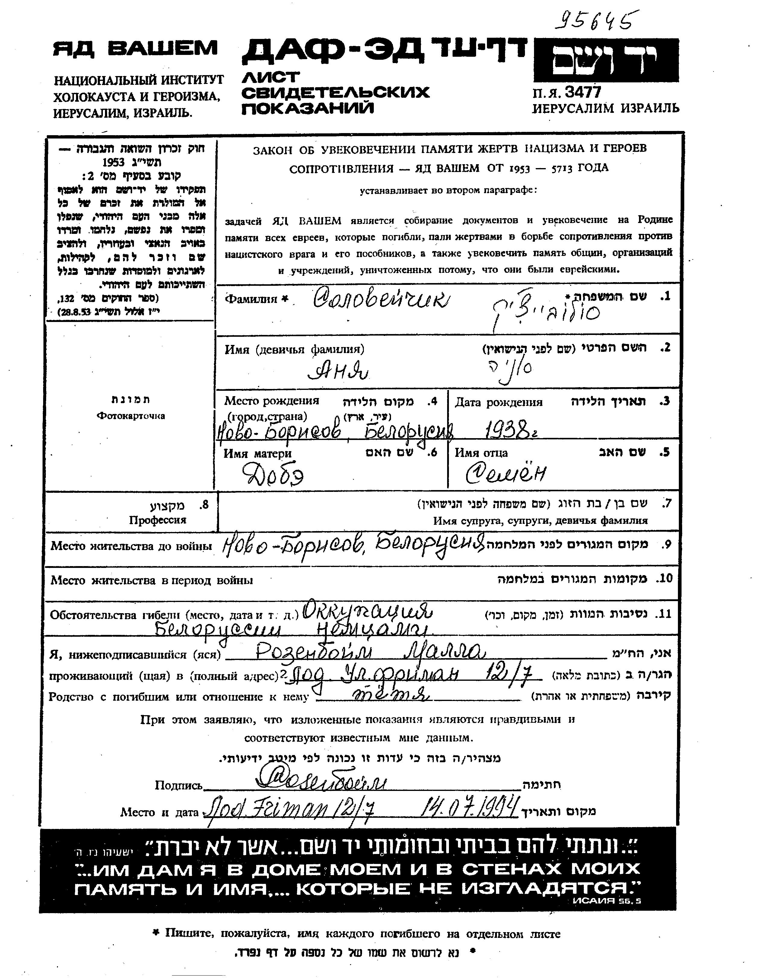 Поиск подателя Листа свидетельских показаний. Поиск по любому имени, включая уменьшительное или прозвище