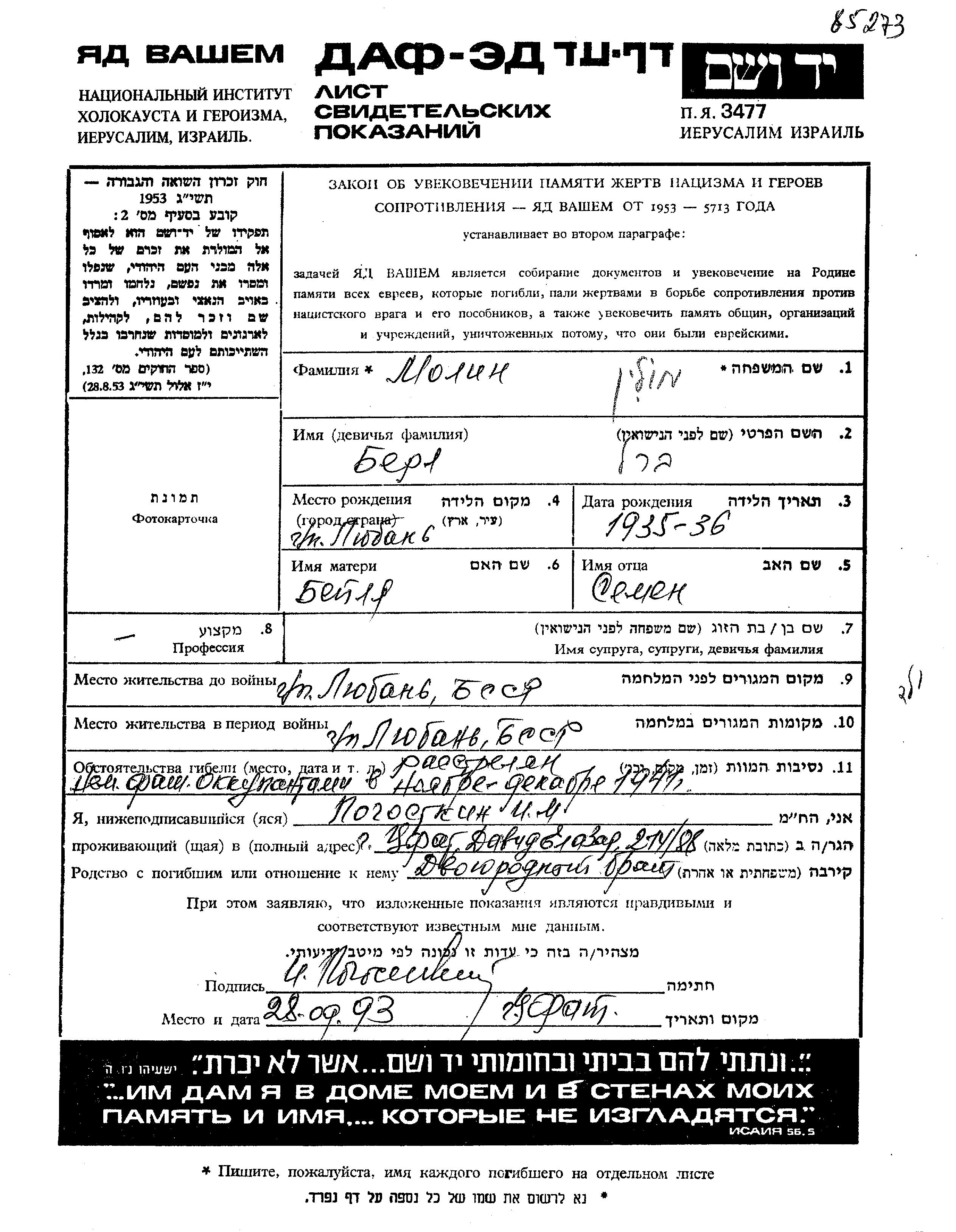 Поиск подателя Листа свидетельских показаний. Поиск по любому имени, включая уменьшительное или прозвище