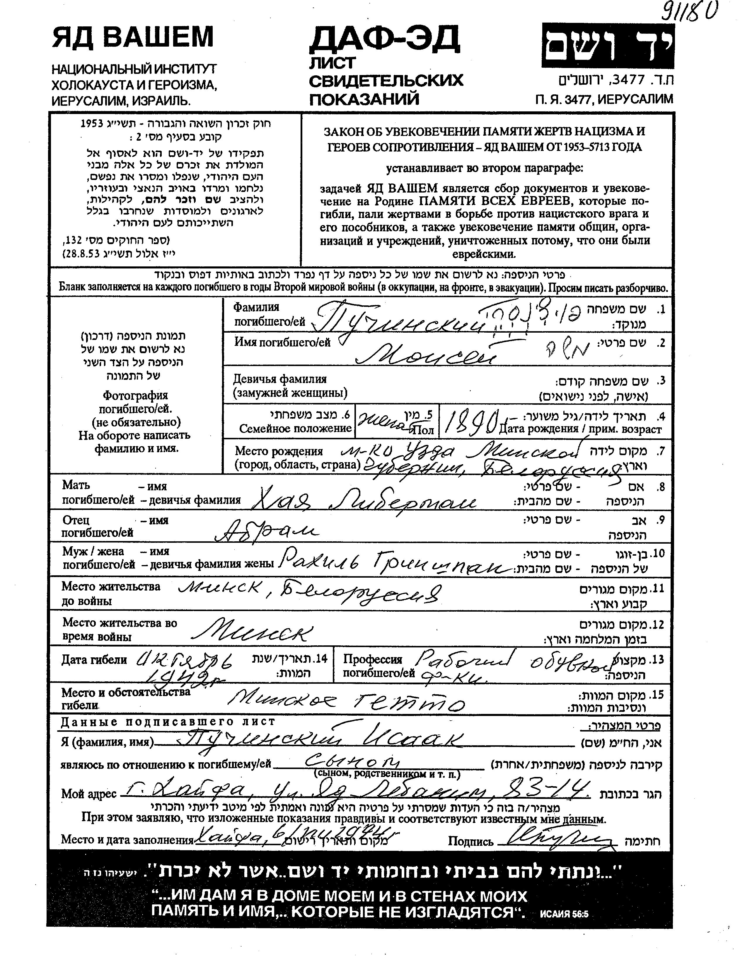 Поиск подателя Листа свидетельских показаний. Поиск по любому имени, включая уменьшительное или прозвище