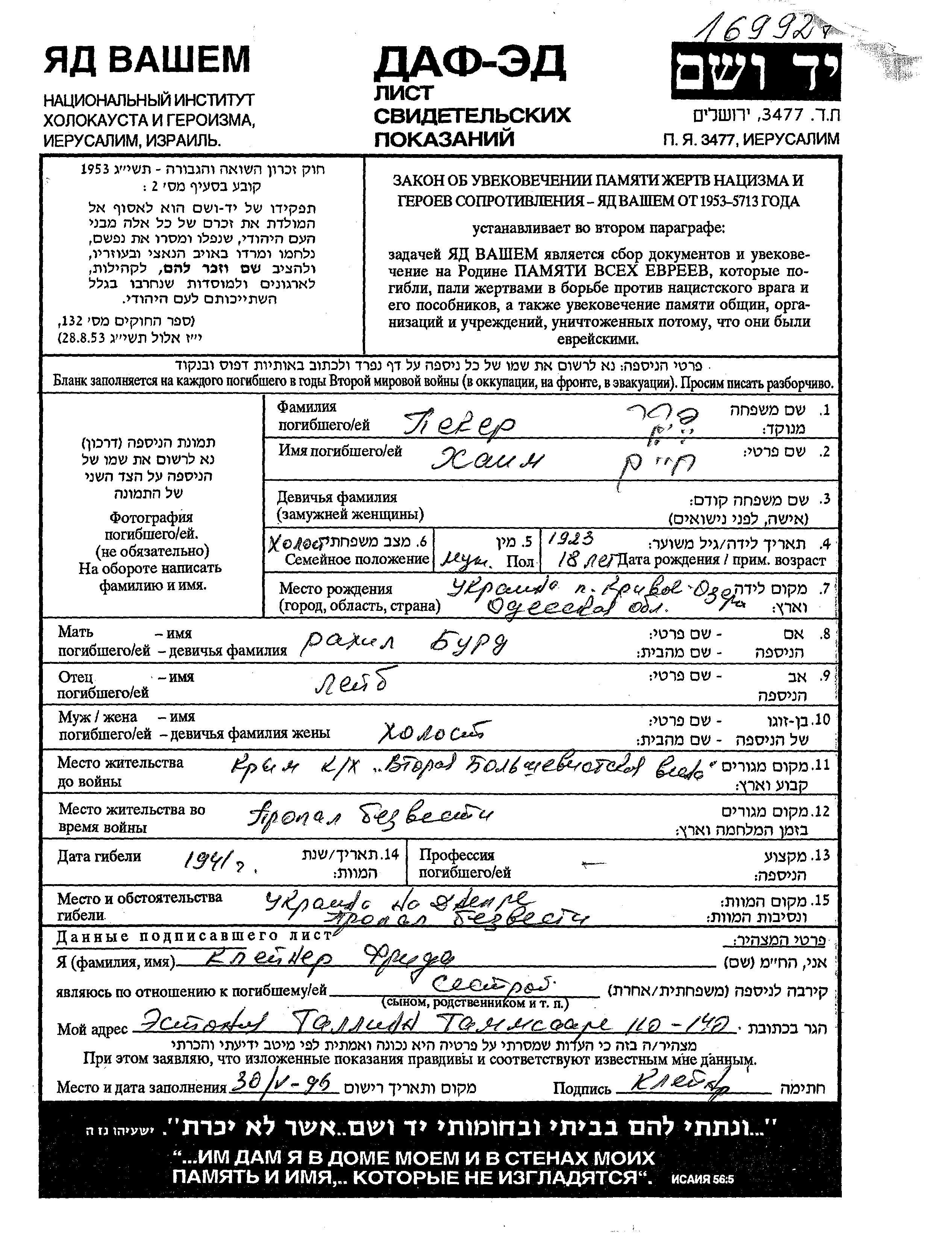 Яд Вашем - Листы свидетельских показаний Мемориального фонда