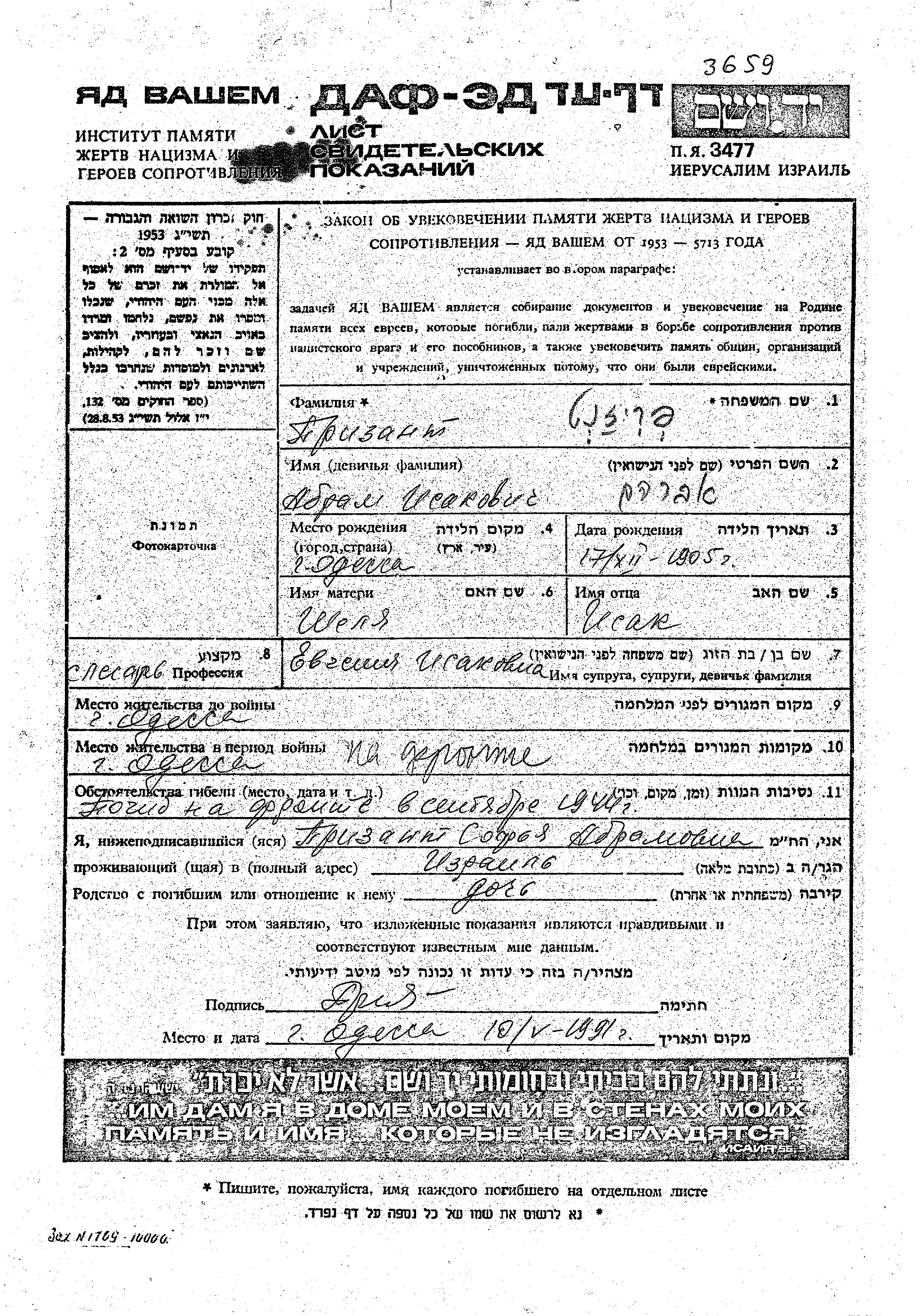 Место жительства перед войной: город/село или область/район, или страна