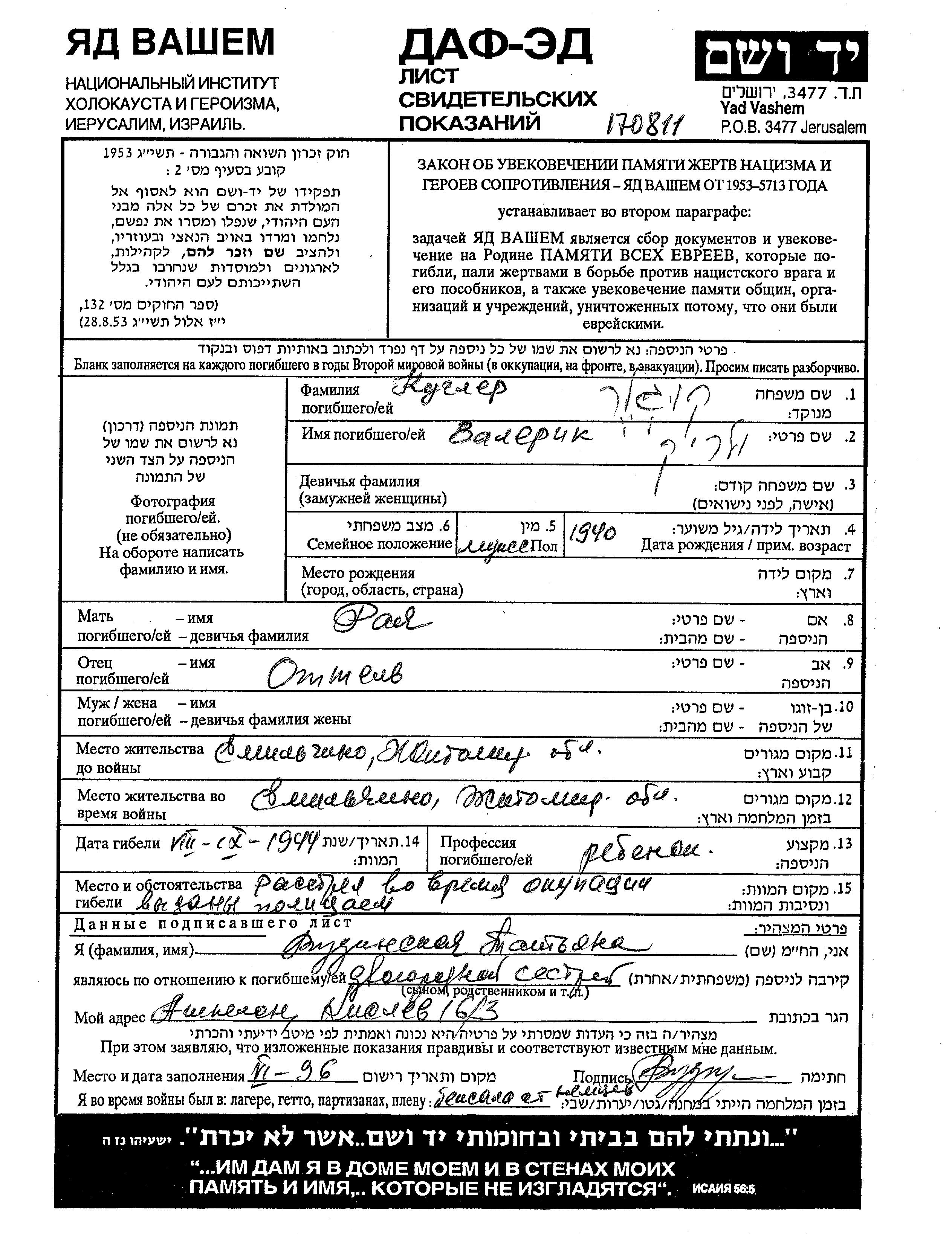 Поиск подателя Листа свидетельских показаний. Поиск по любому имени, включая уменьшительное или прозвище