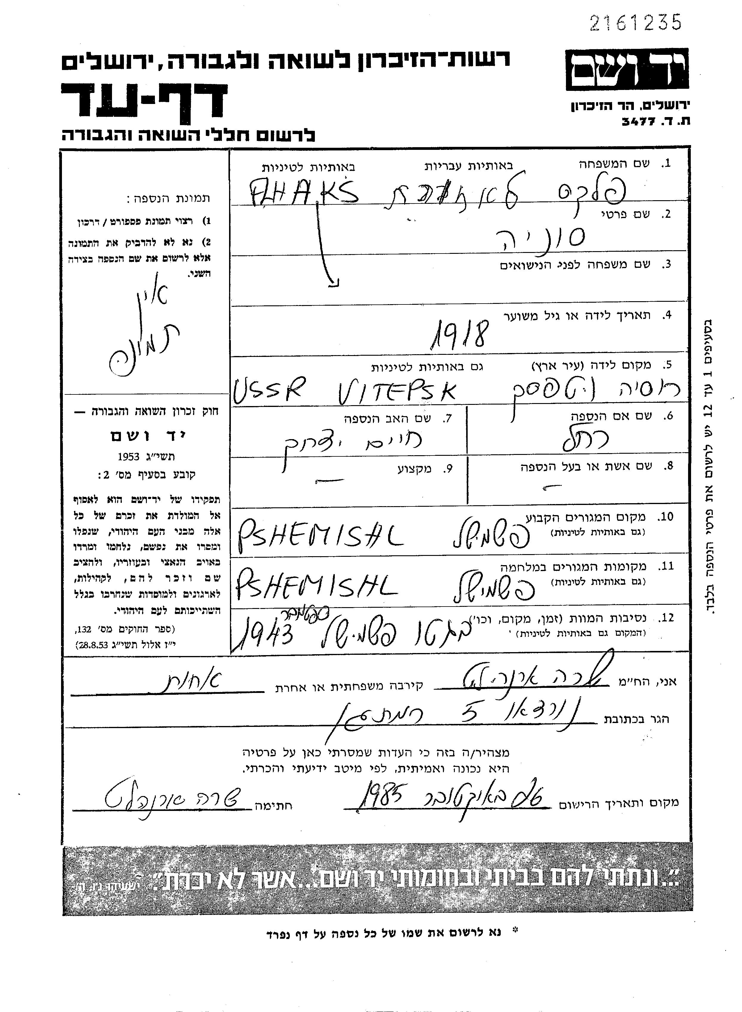Яд Вашем - Листы свидетельских показаний Мемориального фонда