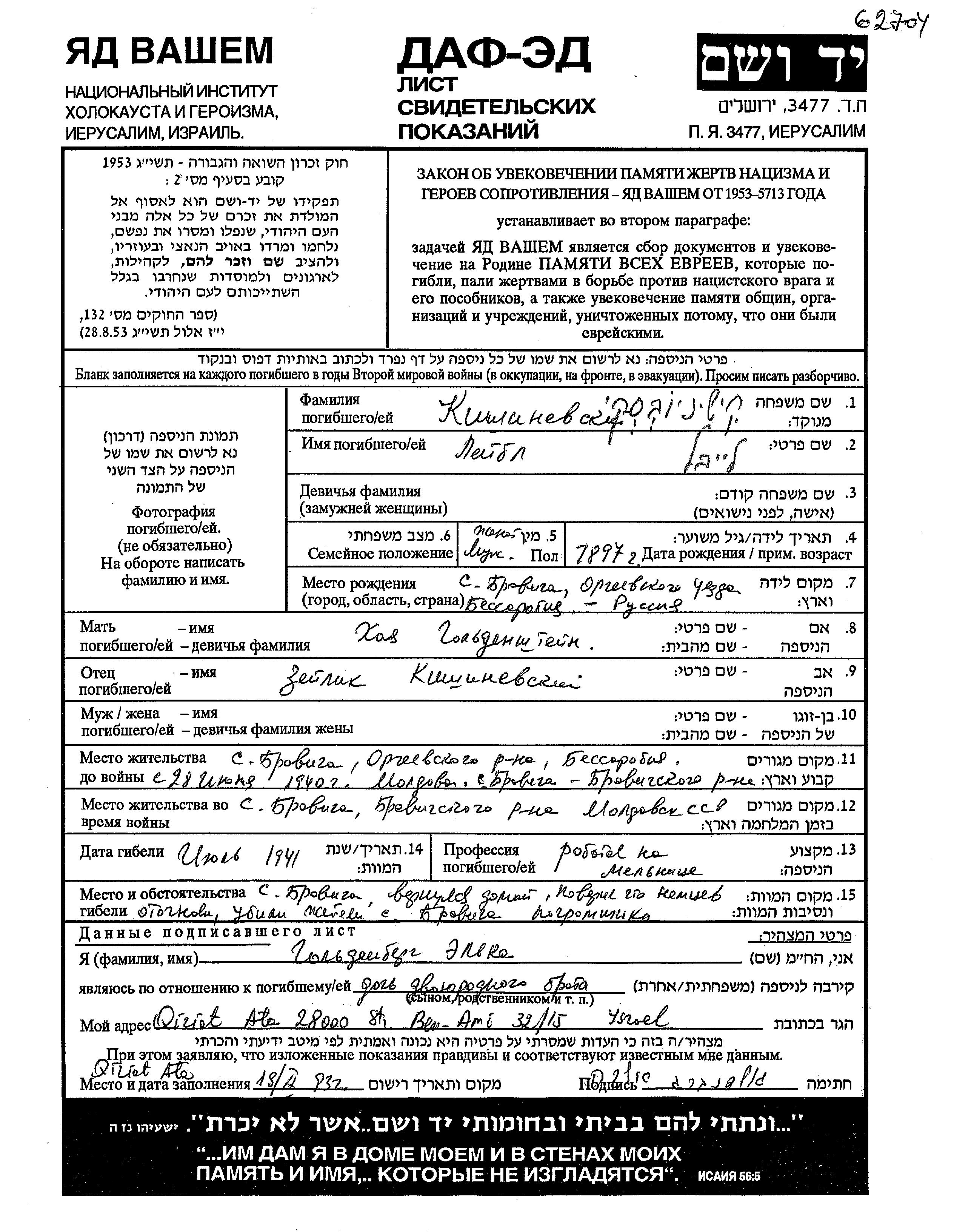 Яд Вашем - Листы свидетельских показаний Мемориального фонда