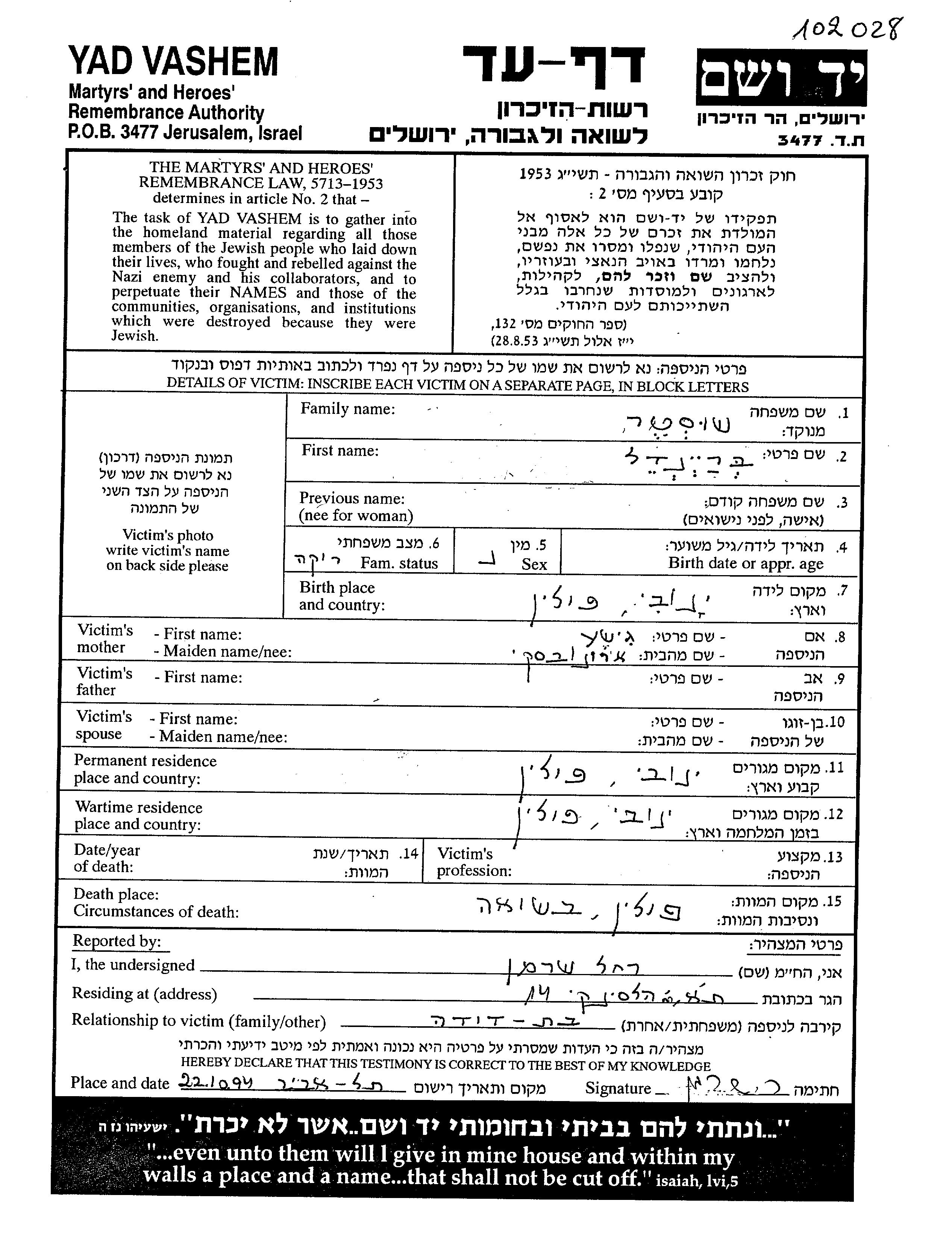 Во время Шоа евреев уничтожали разными способами: газовые камеры, расстрелы, их заживо хоронили или сжигали, непосильным принудительным трудом, голодом, эпидемиями, отсутствием минимальных гигиенических условий и медицинского обслуживания, и т.д. Некоторые евреи добровольно расстались со своей жизнью, чтобы избежать ареста и дальнейших преследований или чтобы покончить с безысходностью и бесконечными страданиями. Десятки тысяч еврейских солдат, служивших в Советской армии и попавших в плен, , были отобраны как евреи и убиты. Многие были зарегистрированы как «пропавшие без вести».