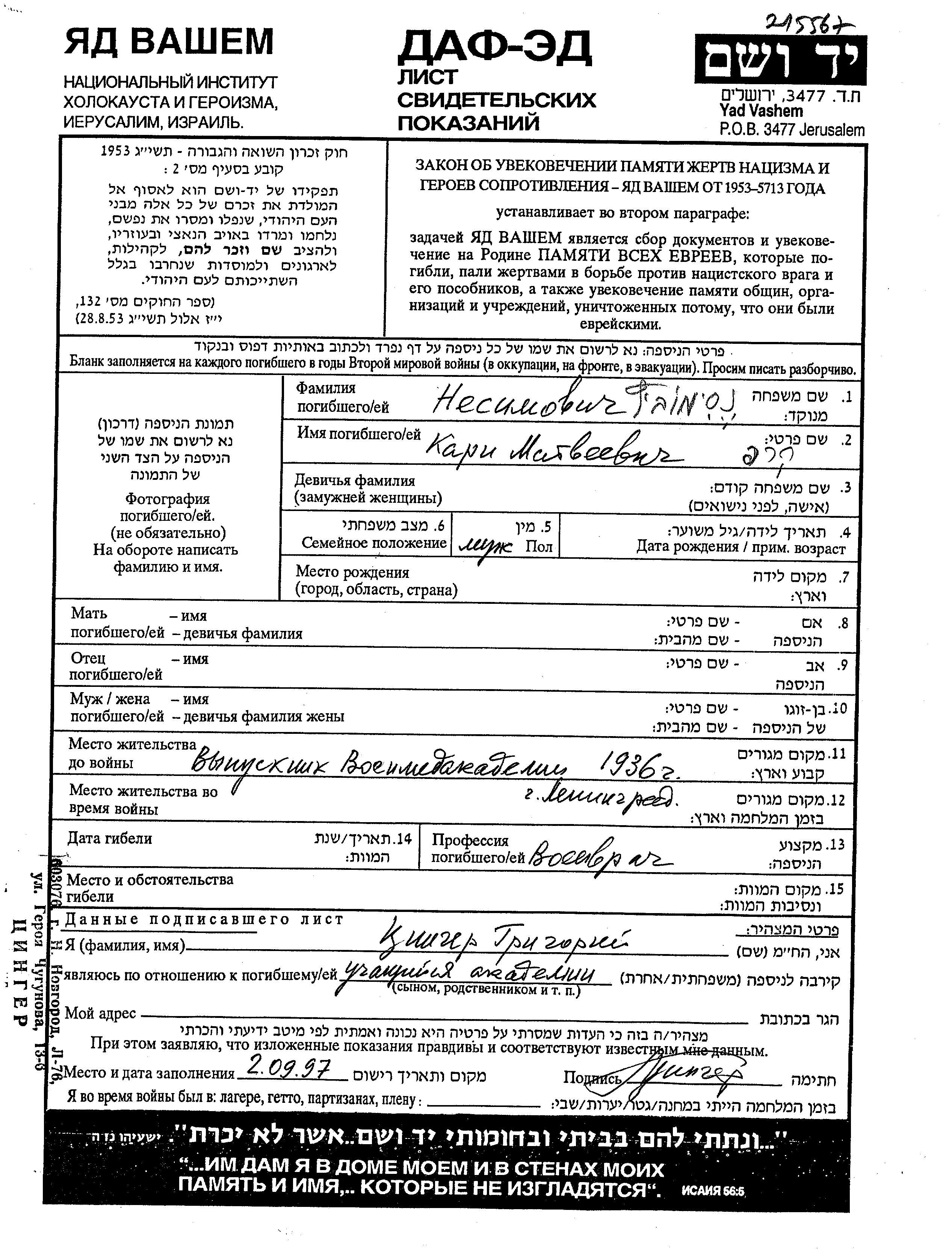 Поиск подателя Листа свидетельских показаний. Поиск по любому имени, включая уменьшительное или прозвище