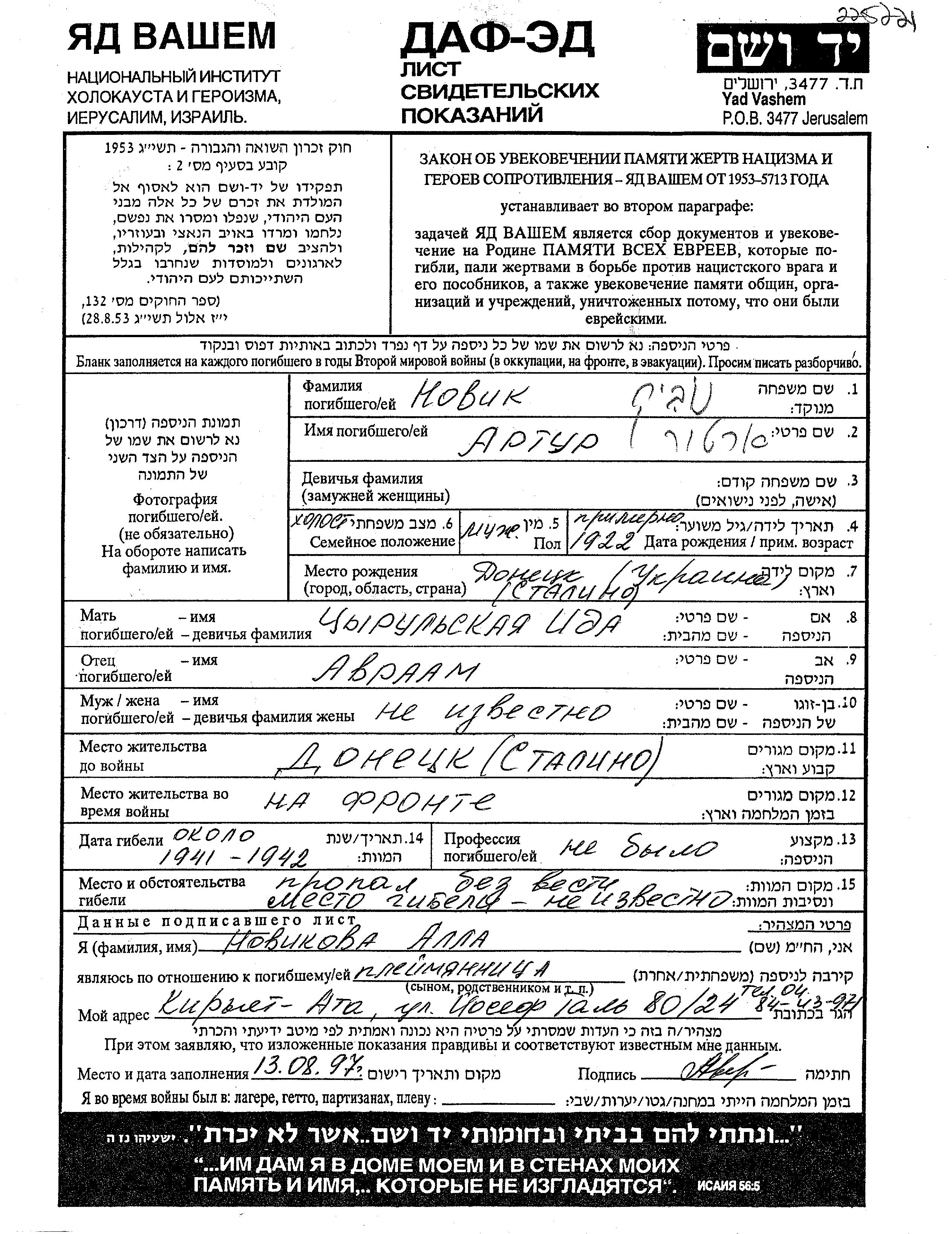 Поиск подателя Листа свидетельских показаний. Поиск по любому имени, включая уменьшительное или прозвище