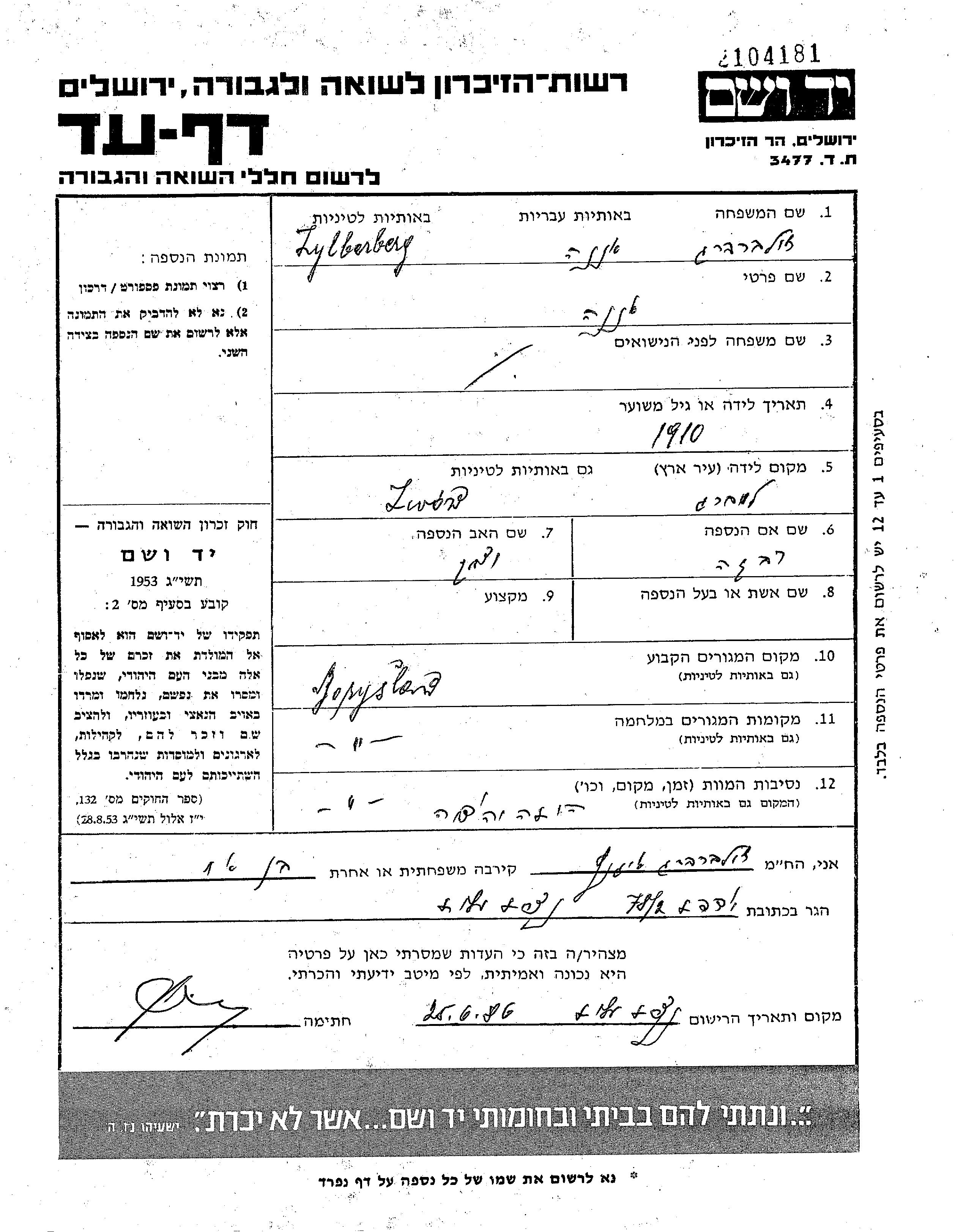 Яд Вашем - Листы свидетельских показаний Мемориального фонда
