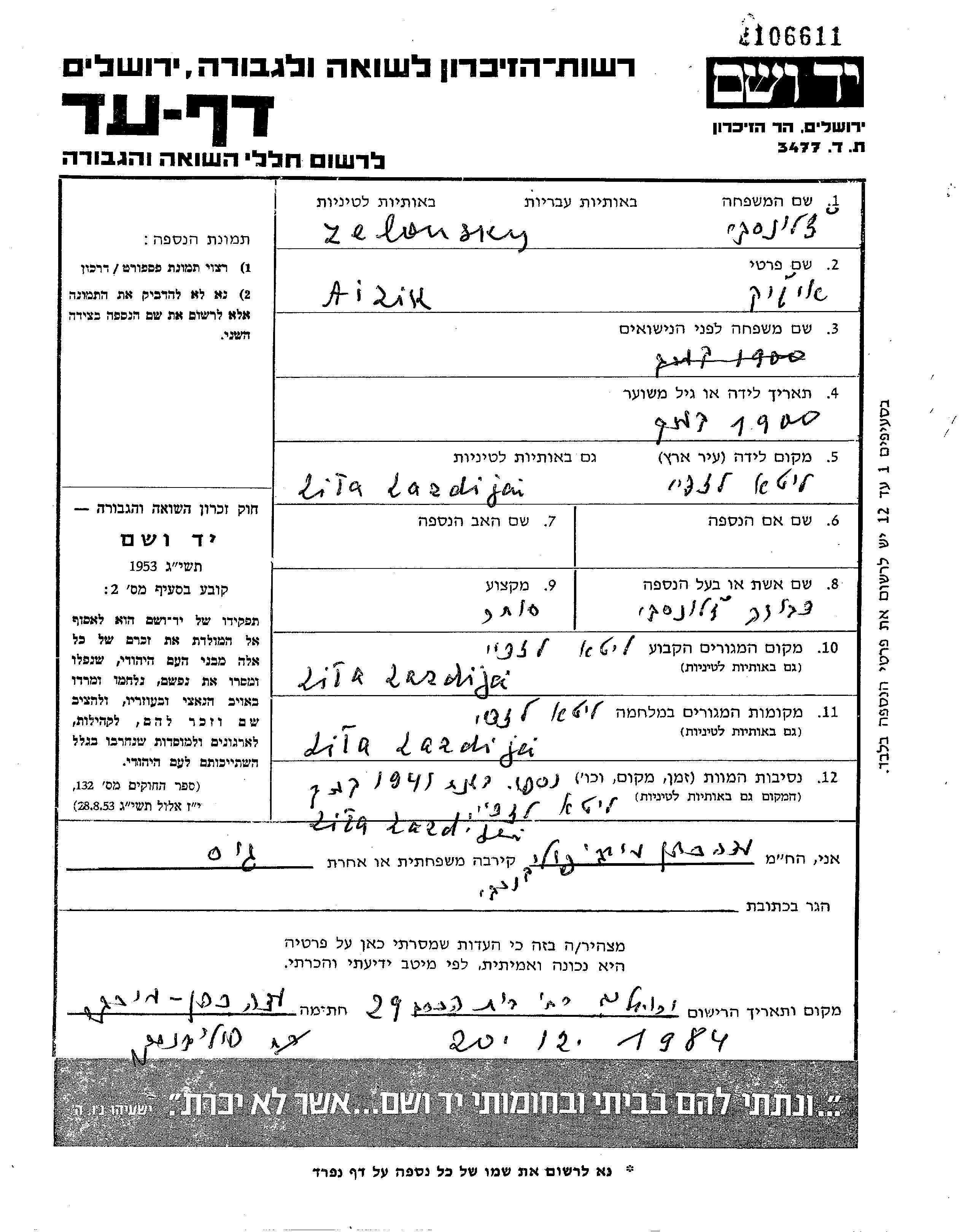 Яд Вашем - Листы свидетельских показаний Мемориального фонда