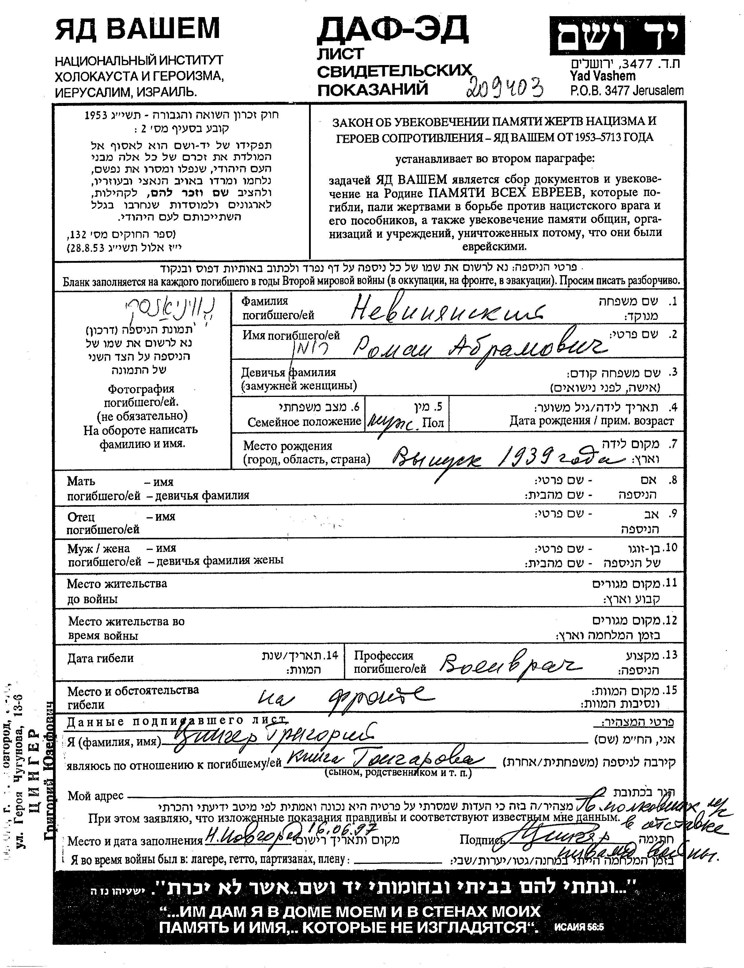 Поиск подателя Листа свидетельских показаний. Поиск по любому имени, включая уменьшительное или прозвище