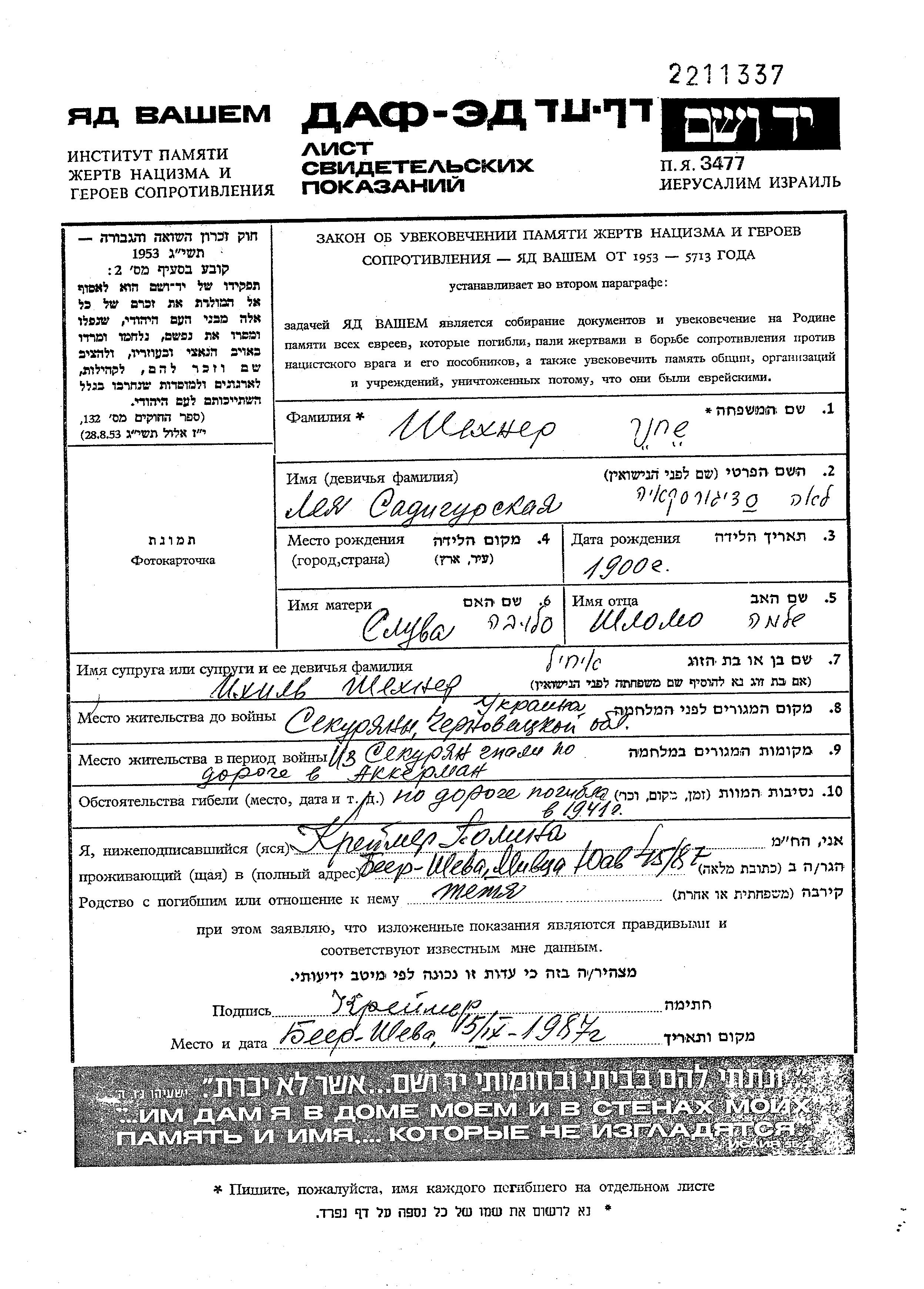 Яд Вашем - Листы свидетельских показаний Мемориального фонда