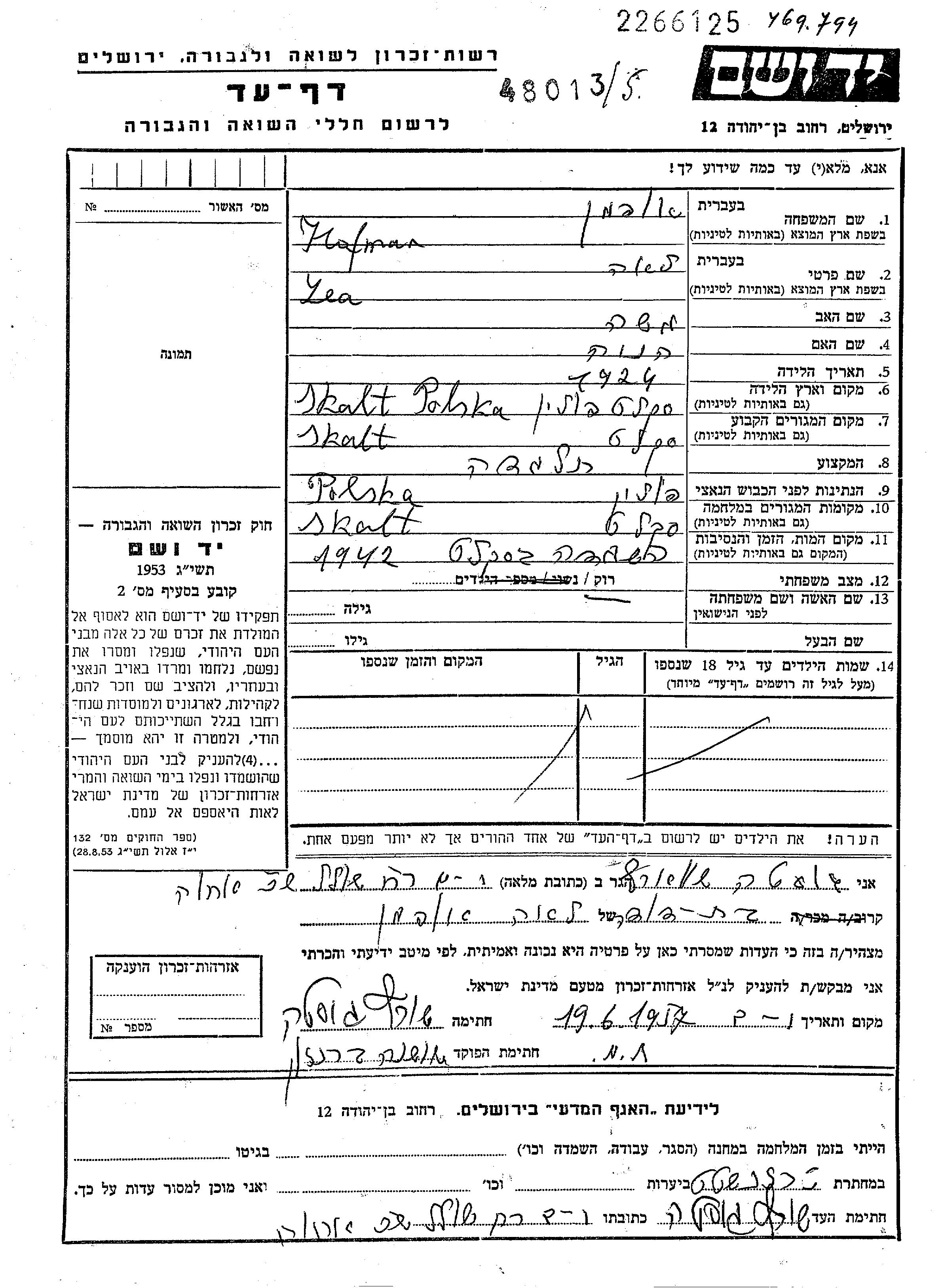 Яд Вашем - Листы свидетельских показаний Мемориального фонда