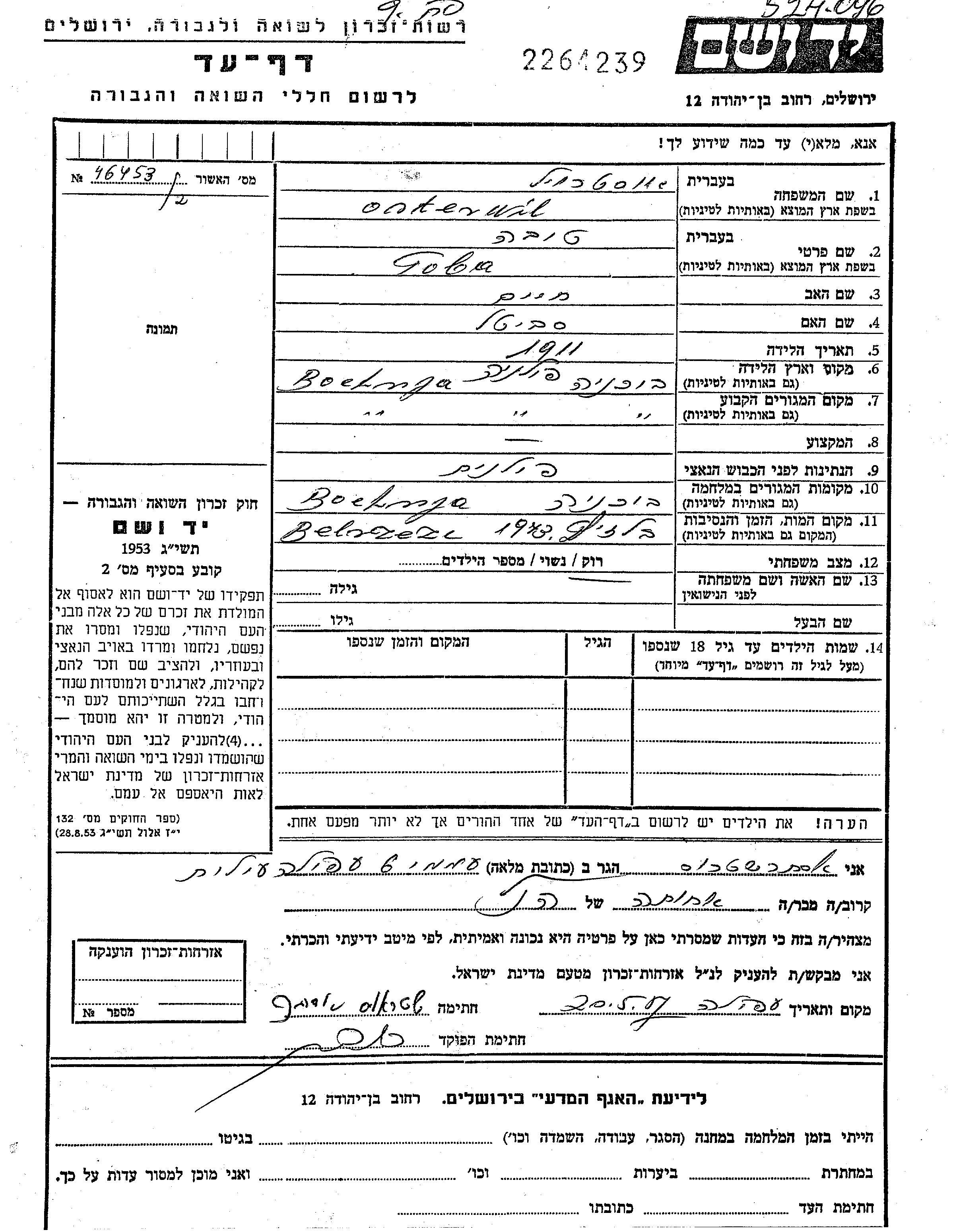 Яд Вашем - Листы свидетельских показаний Мемориального фонда