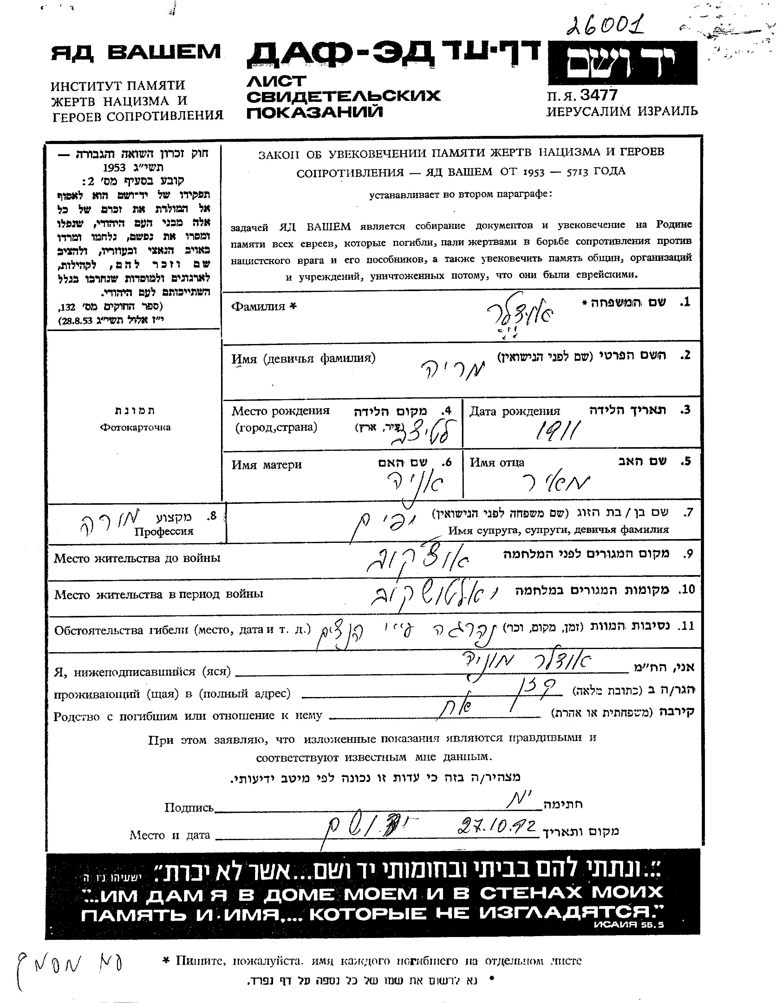 Поиск подателя Листа свидетельских показаний. Поиск по любому имени, включая уменьшительное или прозвище