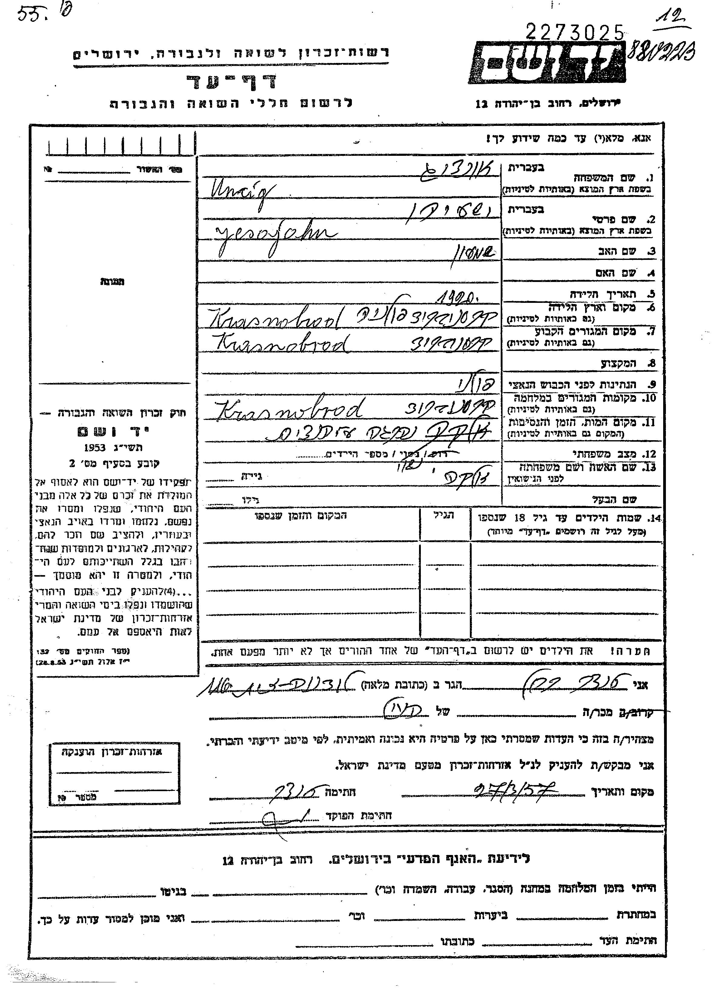 Поиск подателя Листа свидетельских показаний. Поиск по любому имени, включая уменьшительное или прозвище
