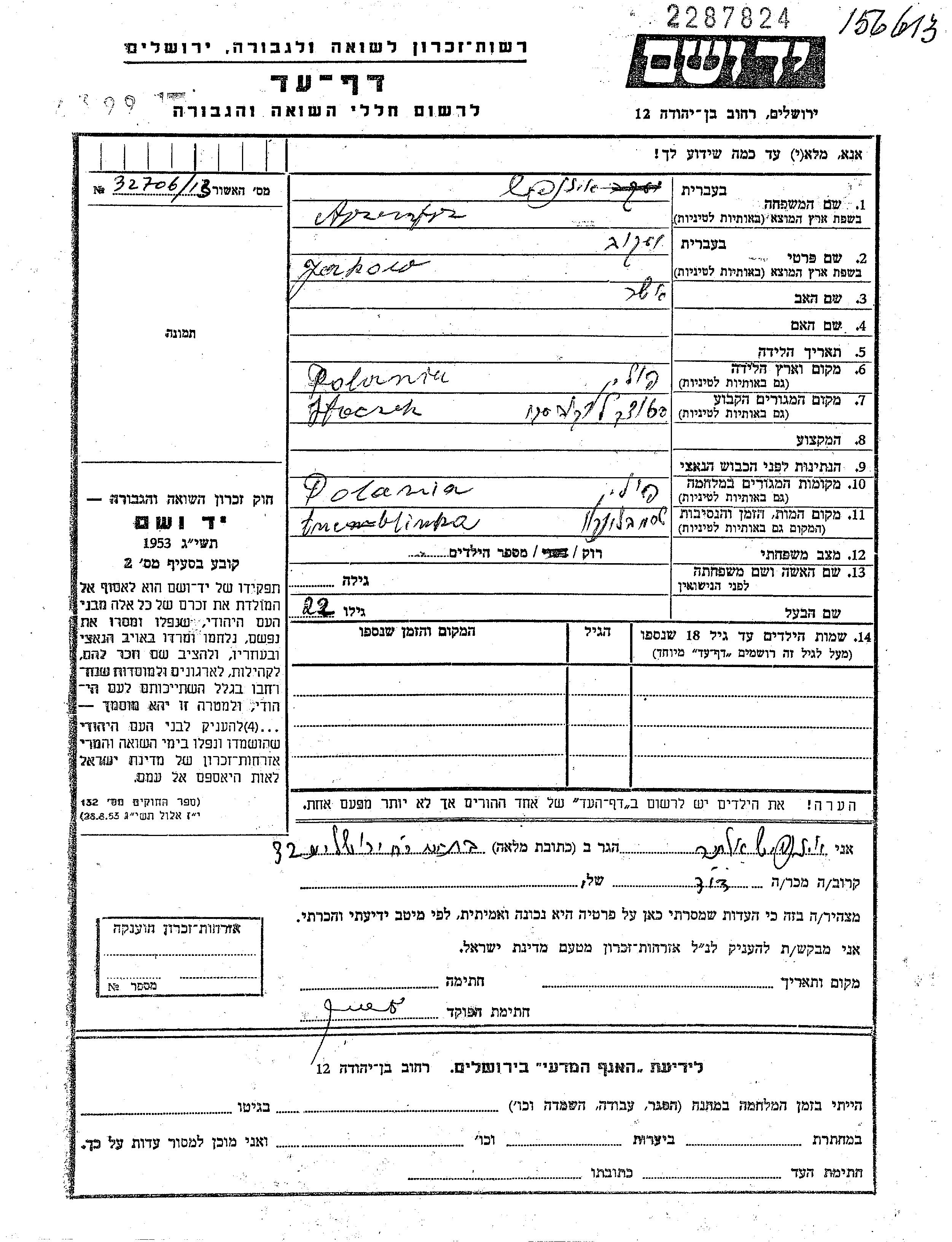 Яд Вашем - Листы свидетельских показаний Мемориального фонда