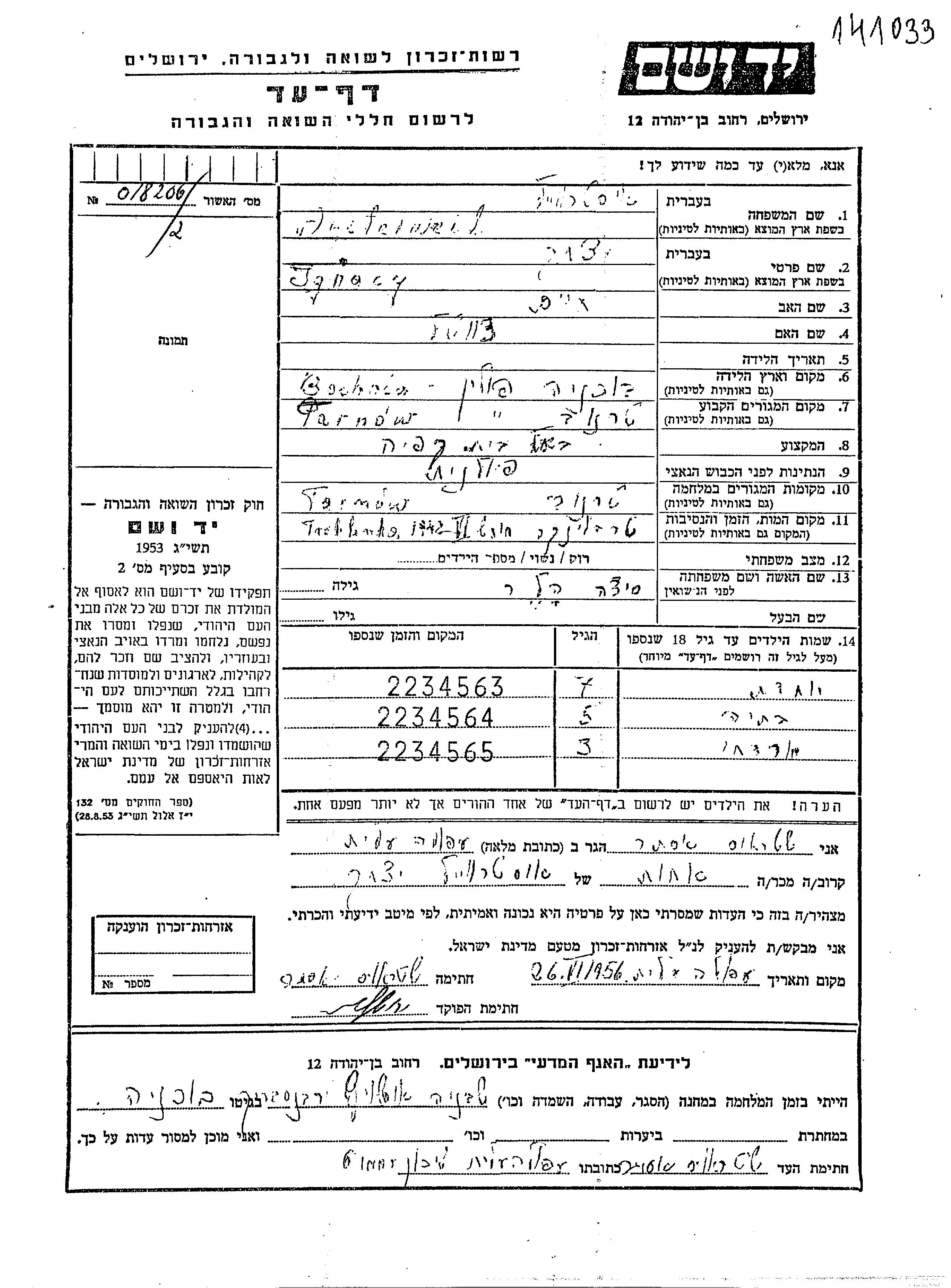 Яд Вашем - Листы свидетельских показаний Мемориального фонда