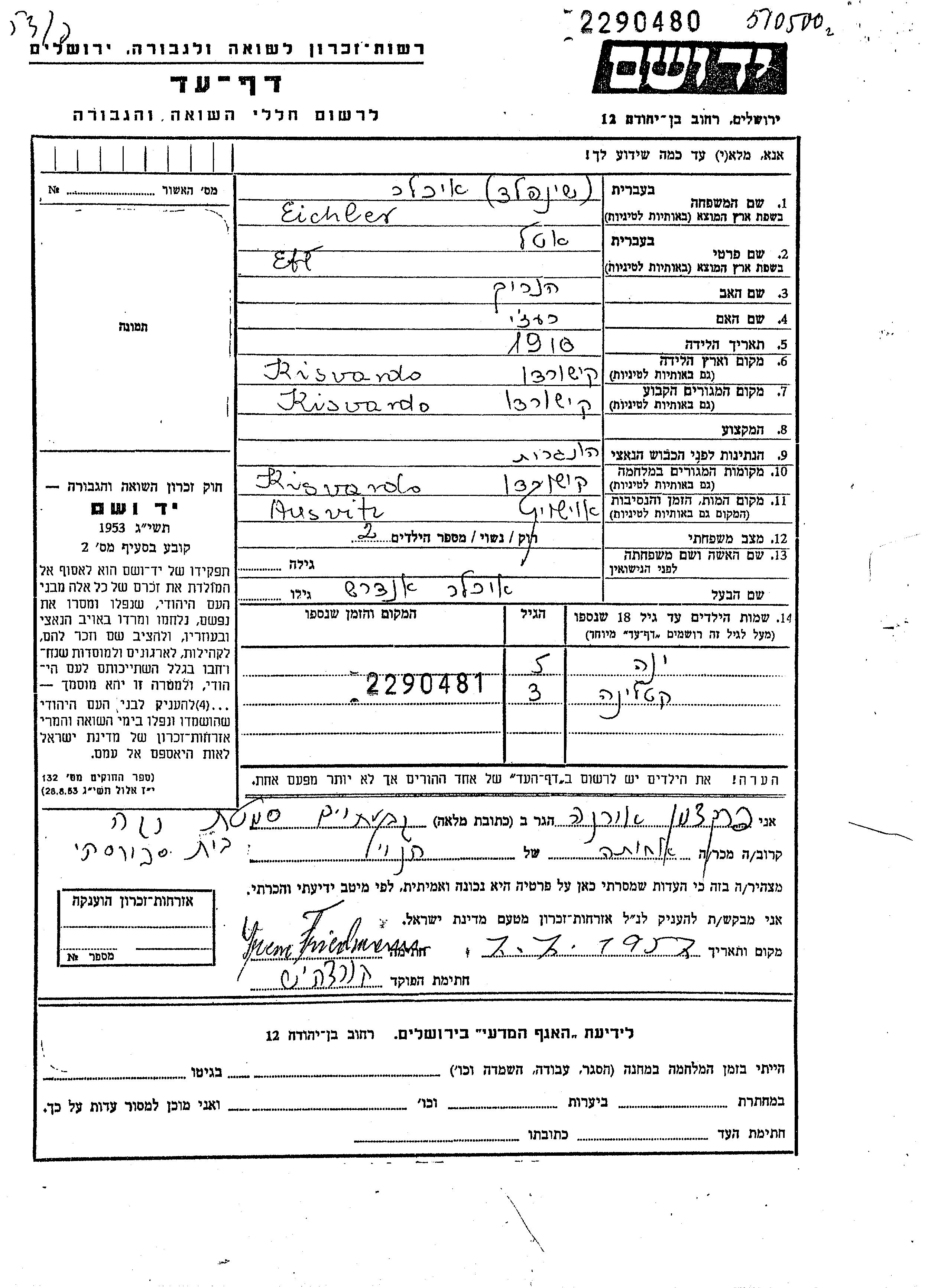 Яд Вашем - Листы свидетельских показаний Мемориального фонда