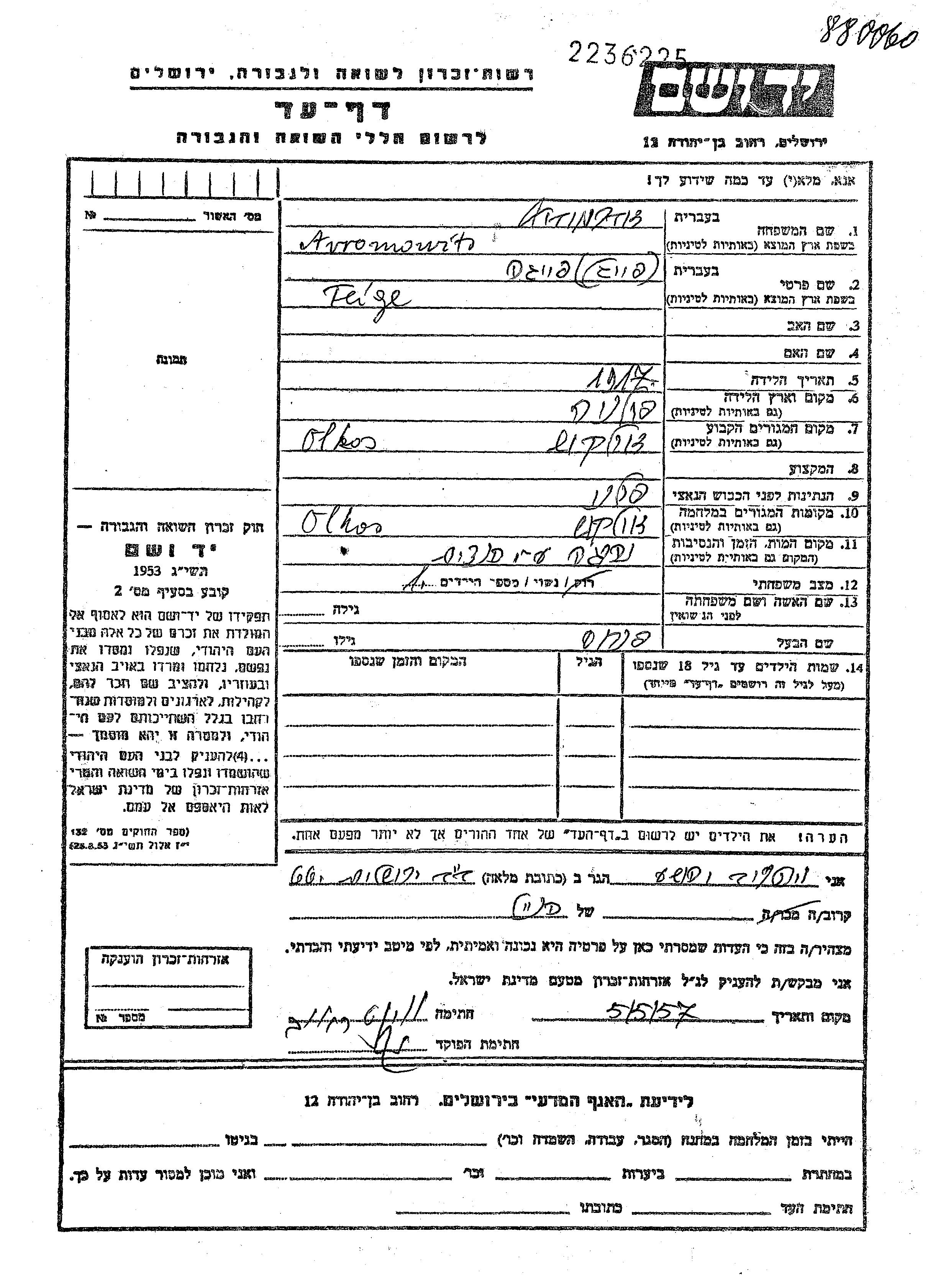 Яд Вашем - Листы свидетельских показаний Мемориального фонда