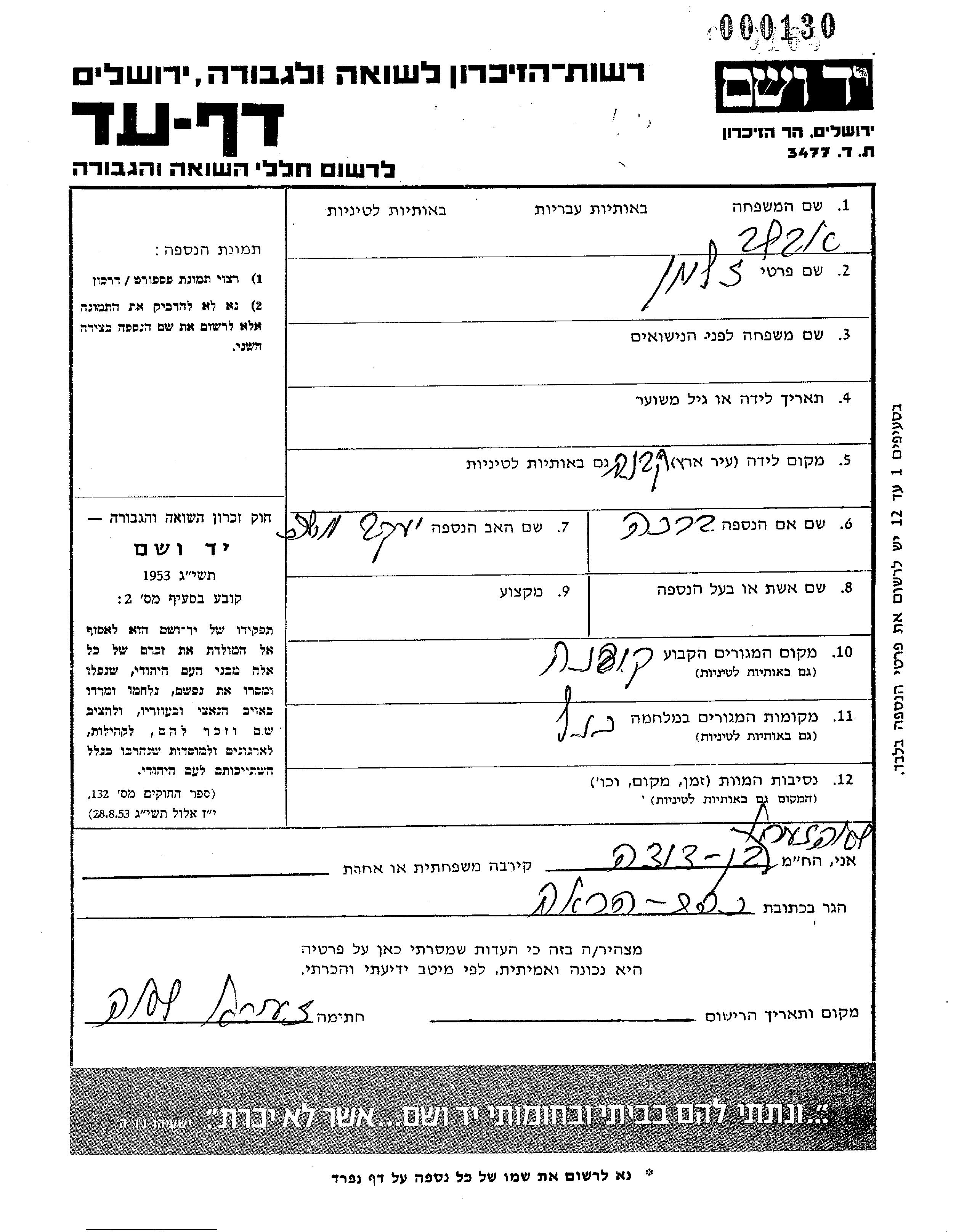 Яд Вашем - Листы свидетельских показаний Мемориального фонда