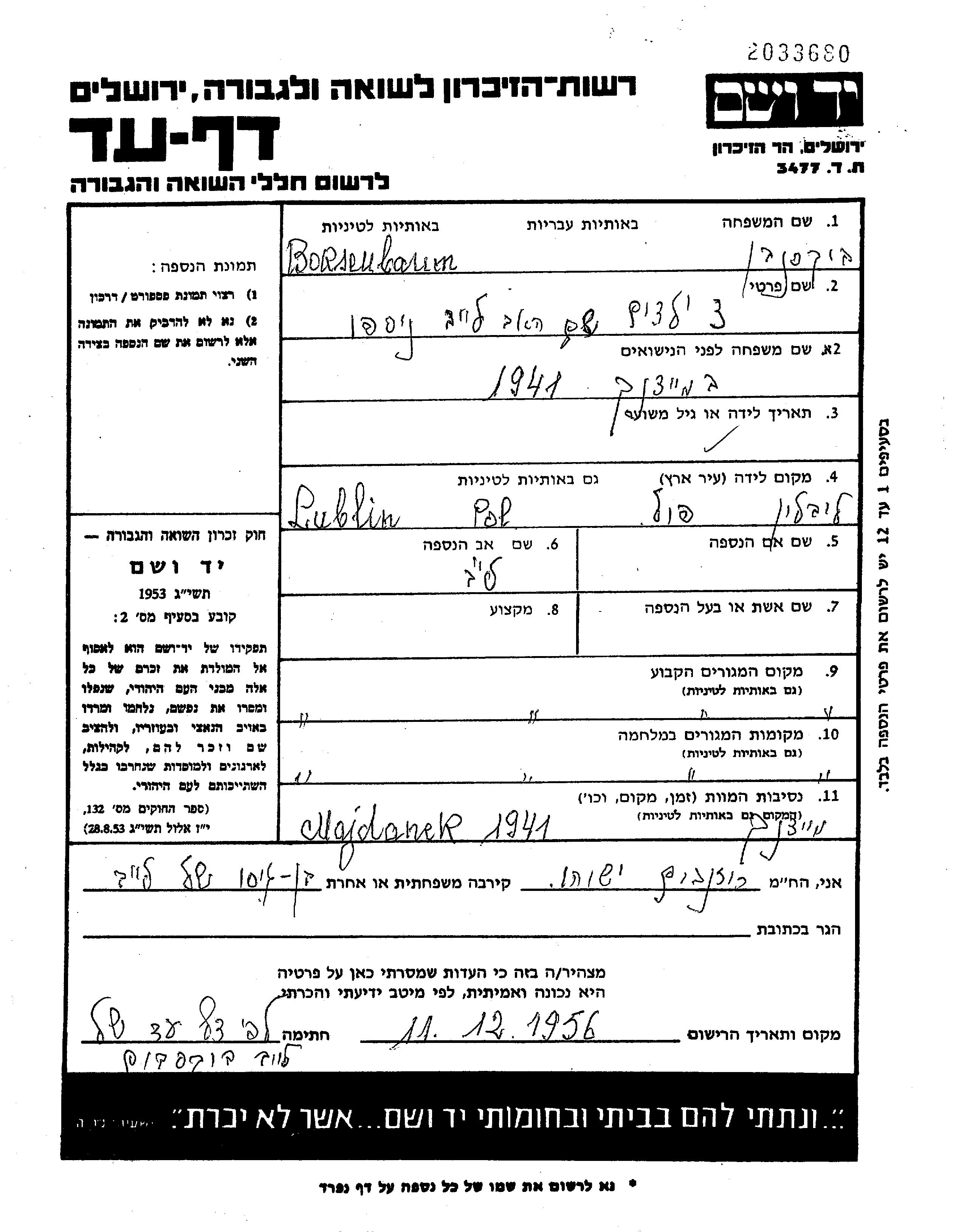 Боксенбаум Боксбом Имя неизвестно Люблин, Польша Лист свидетельских показаний