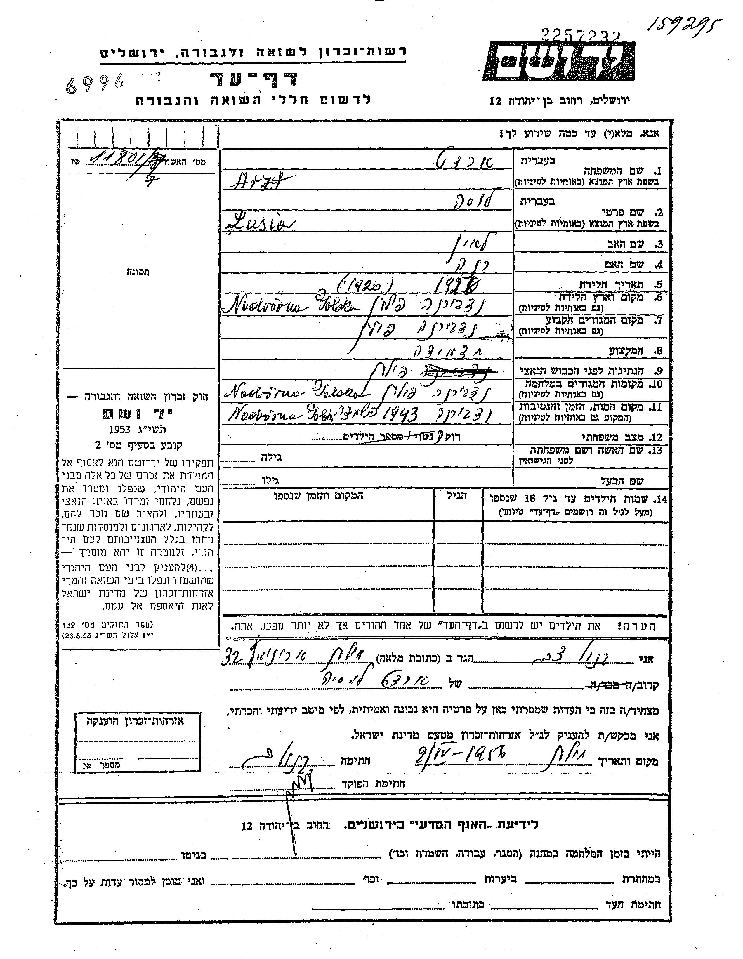 Яд Вашем - Листы свидетельских показаний Мемориального фонда