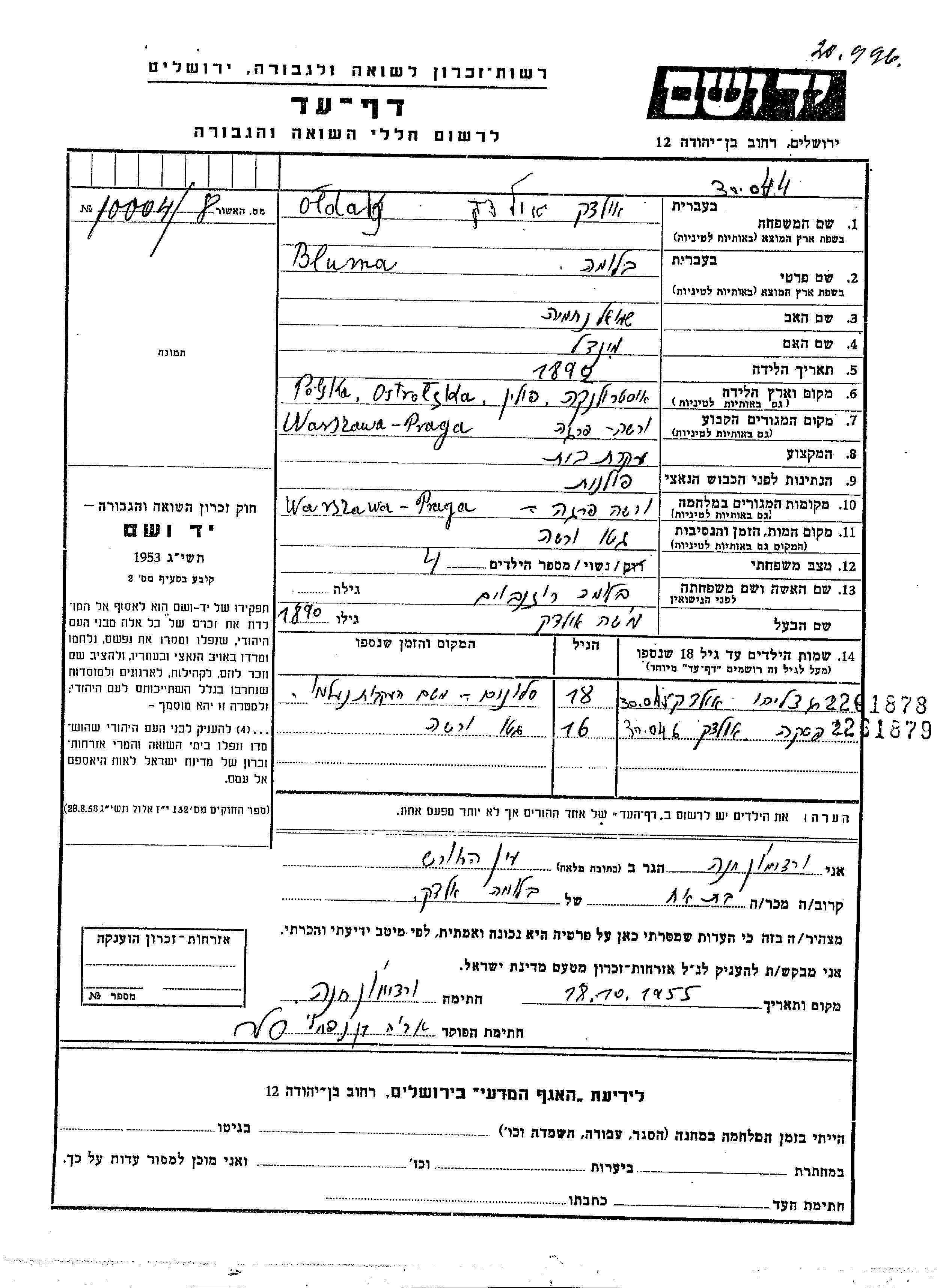 Яд Вашем - Листы свидетельских показаний Мемориального фонда