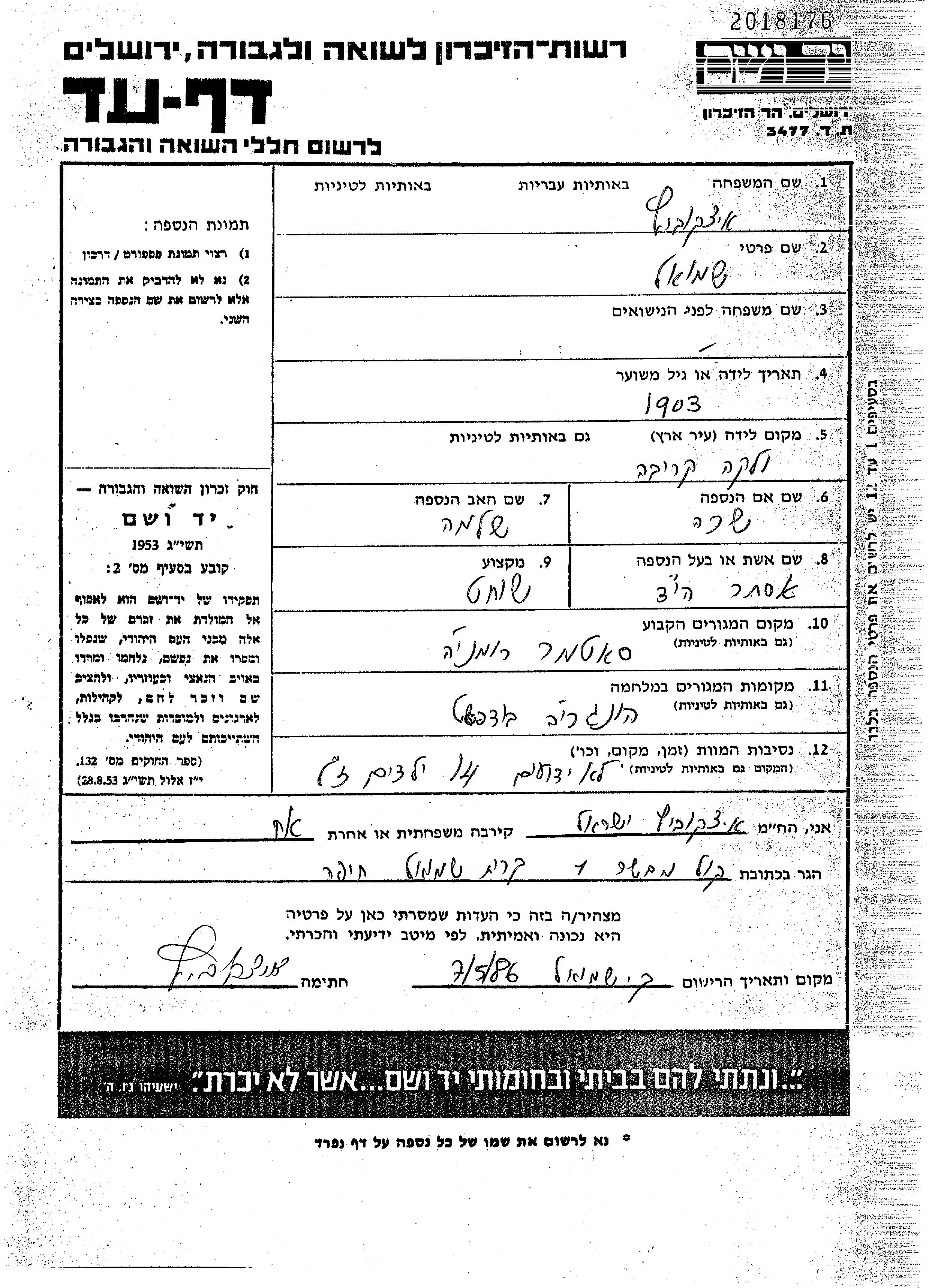 Яд Вашем - Листы свидетельских показаний Мемориального фонда