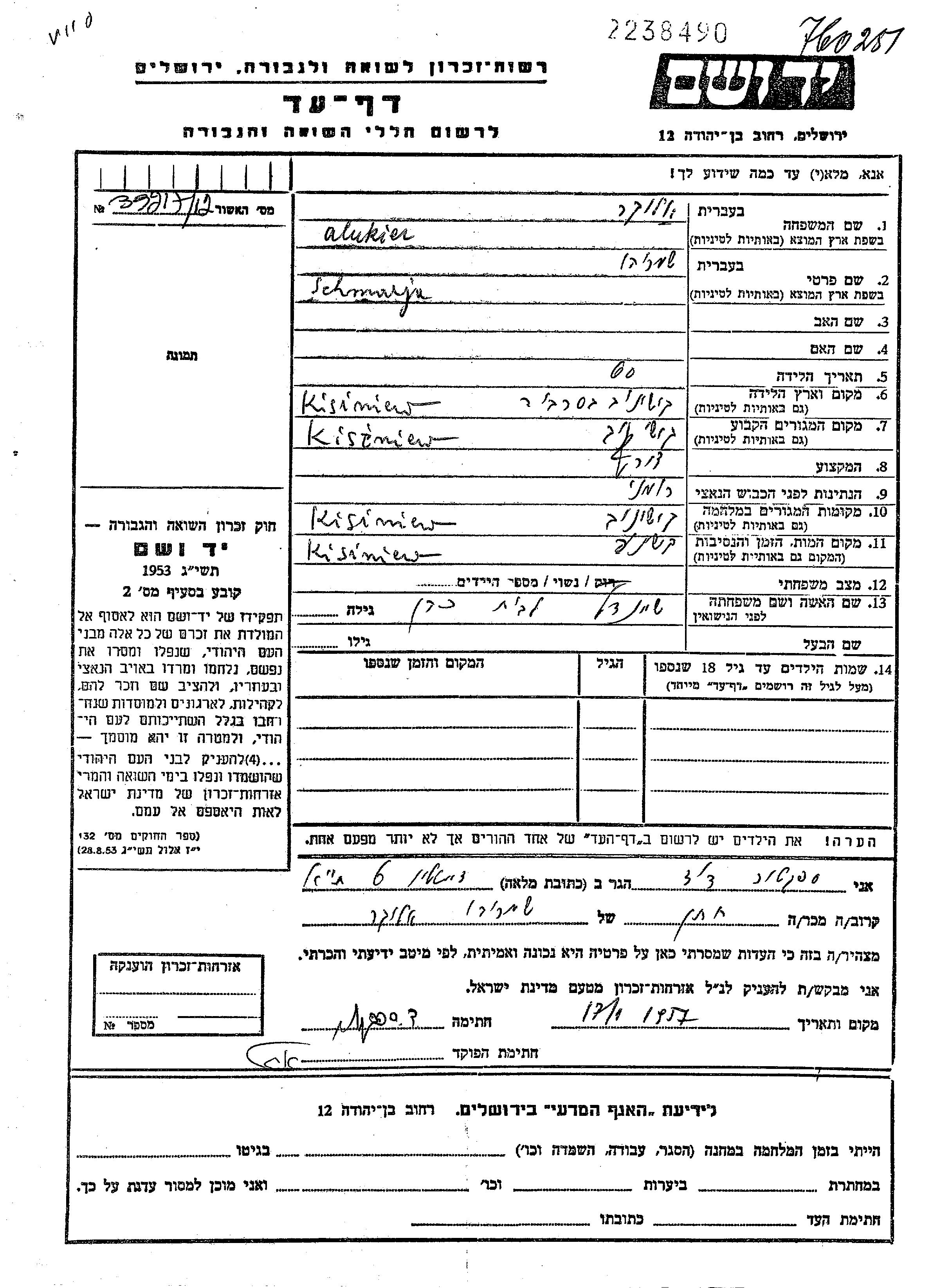Алукер Шмарьягу Кишинёв, Румыния Лист свидетельских показаний