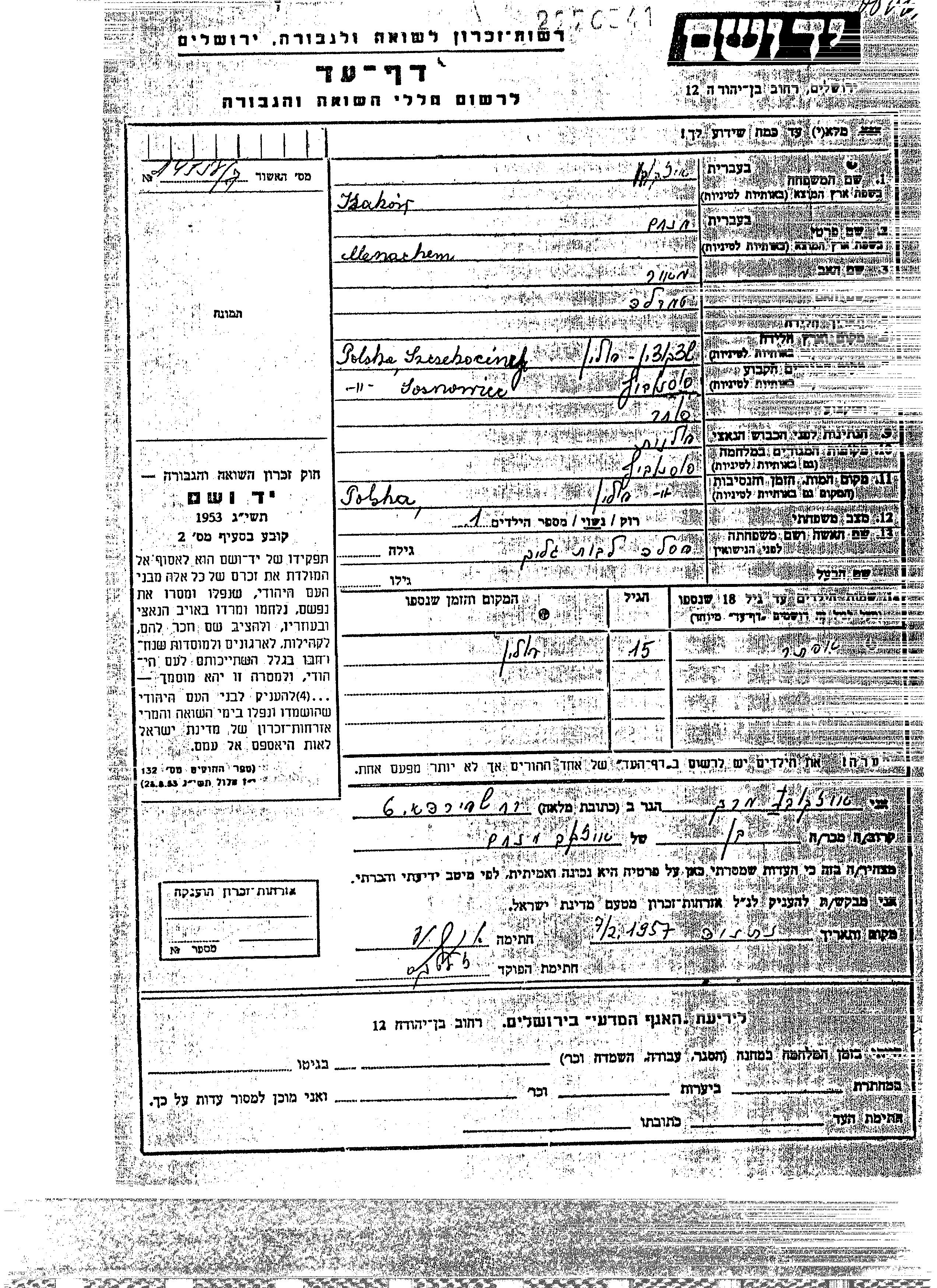 Яд Вашем - Листы свидетельских показаний Мемориального фонда