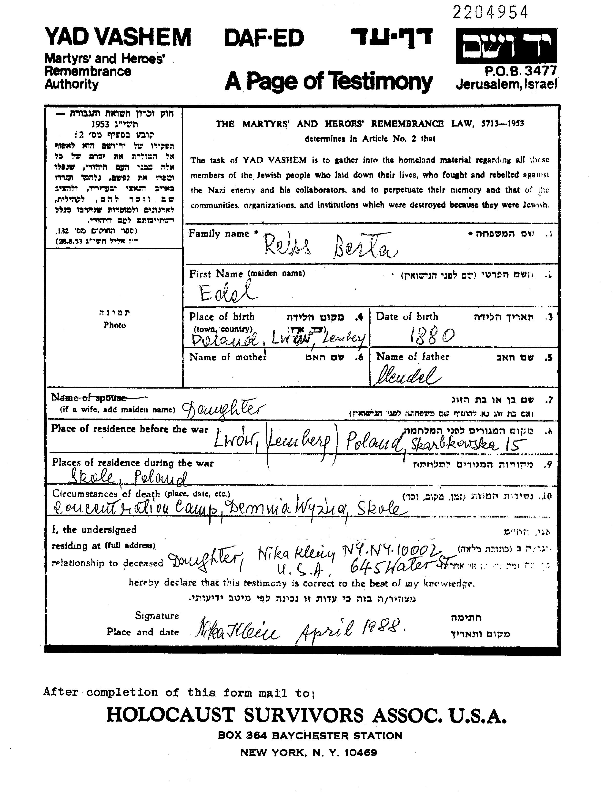 Во время Шоа евреев уничтожали разными способами: газовые камеры, расстрелы, их заживо хоронили или сжигали, непосильным принудительным трудом, голодом, эпидемиями, отсутствием минимальных гигиенических условий и медицинского обслуживания, и т.д. Некоторые евреи добровольно расстались со своей жизнью, чтобы избежать ареста и дальнейших преследований или чтобы покончить с безысходностью и бесконечными страданиями. Десятки тысяч еврейских солдат, служивших в Советской армии и попавших в плен, , были отобраны как евреи и убиты. Многие были зарегистрированы как «пропавшие без вести».