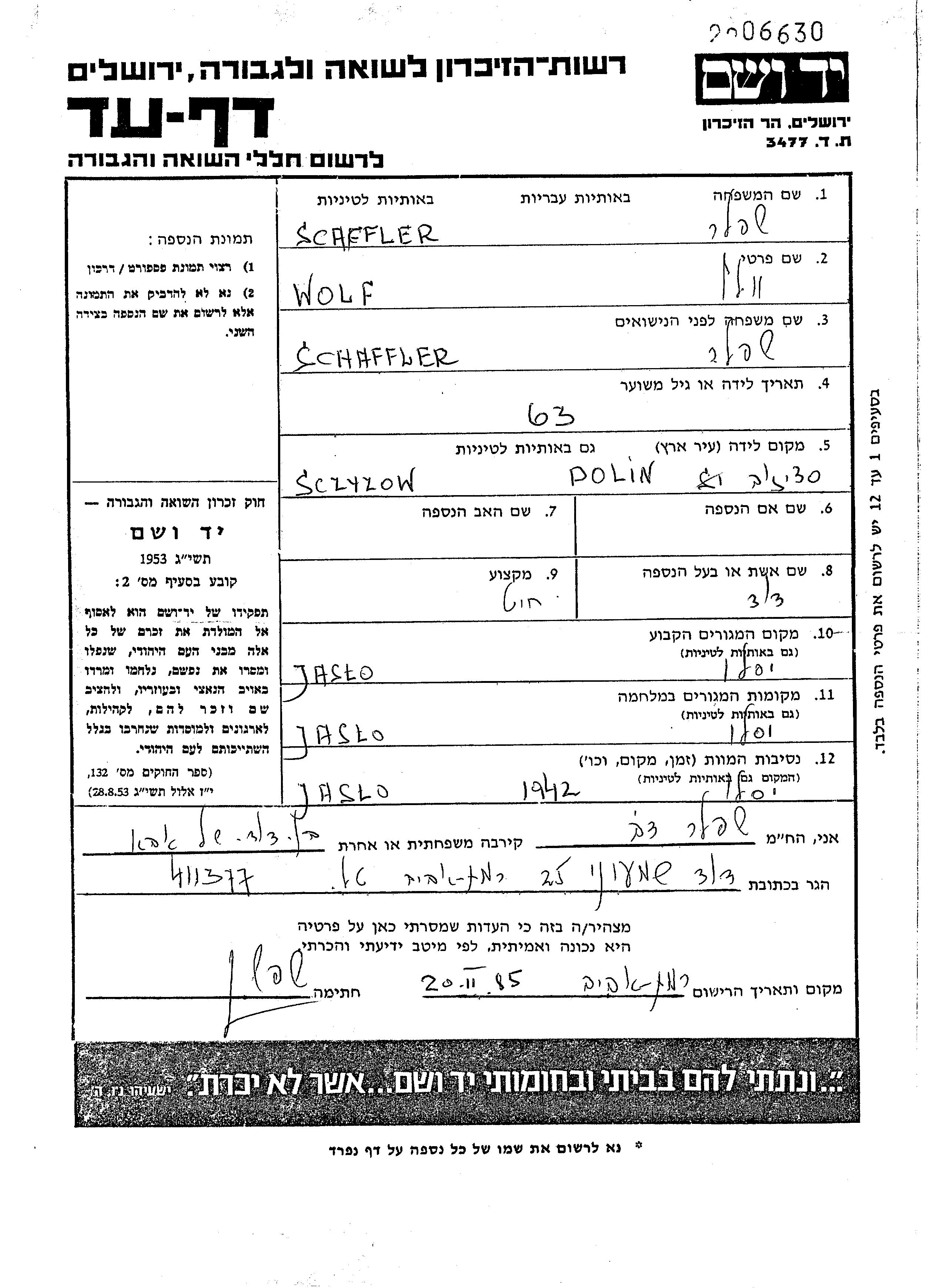Шаффлер Вольф Ясло, Польша Лист свидетельских показаний