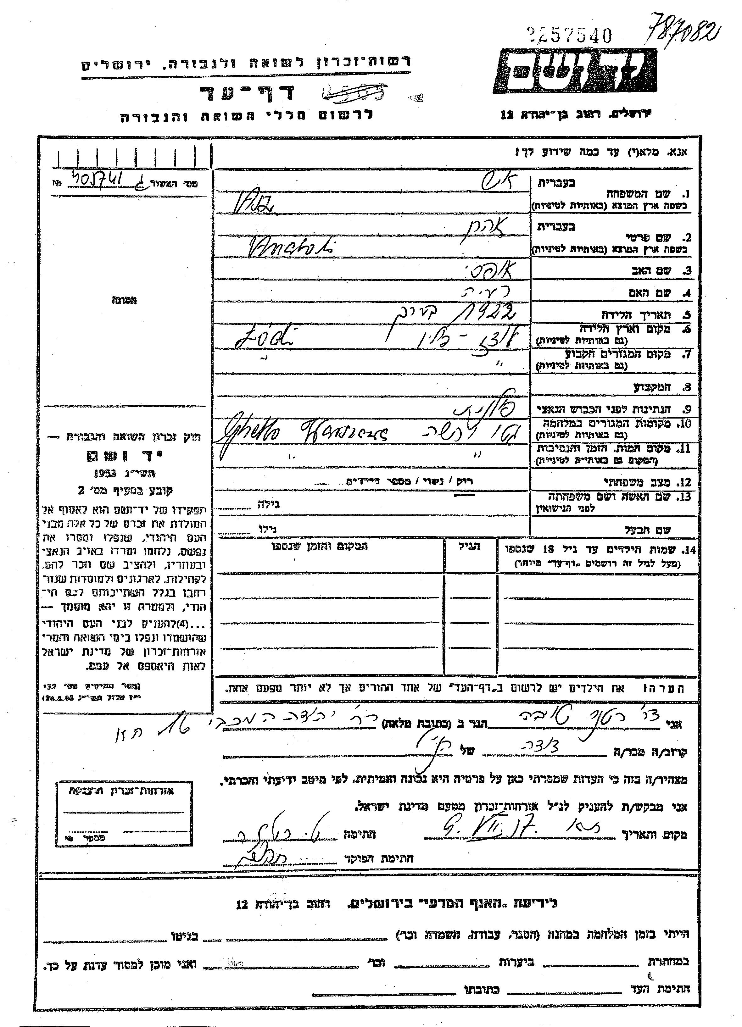 Яд Вашем - Листы свидетельских показаний Мемориального фонда