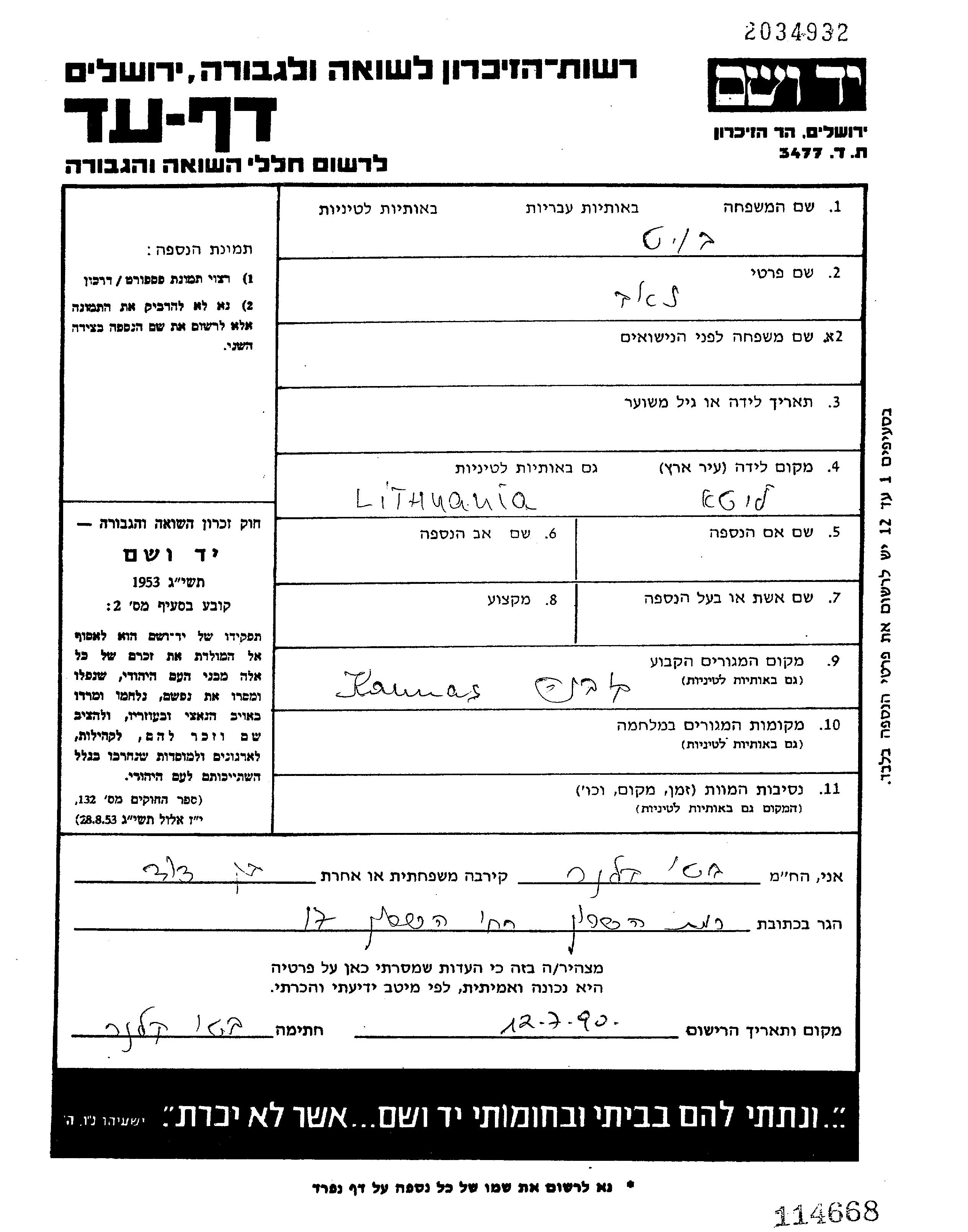Бут Зеев Каунас, Литва Лист свидетельских показаний