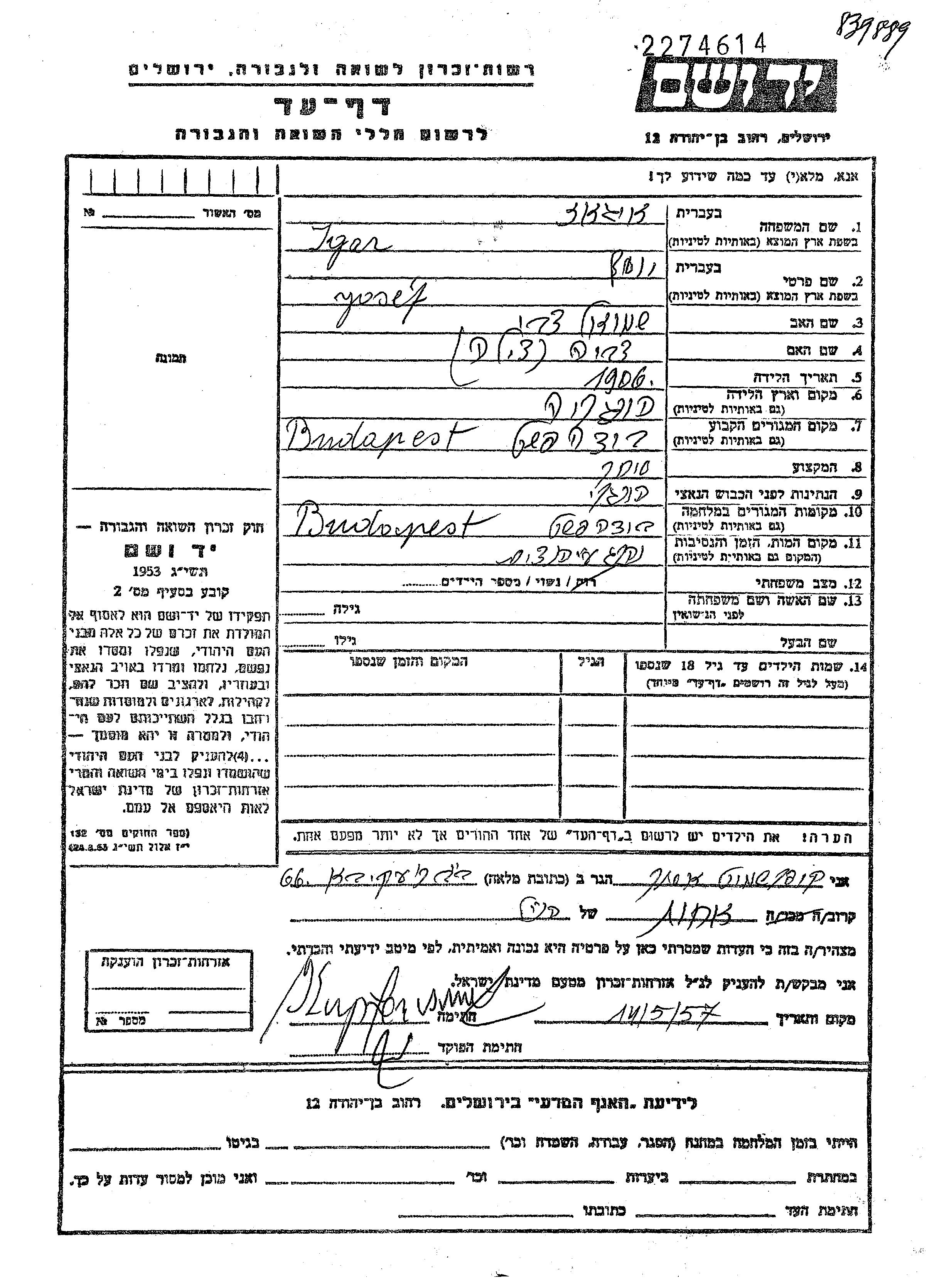 Игаз Иосеф 1906 Будапешт, Венгрия Лист свидетельских показаний