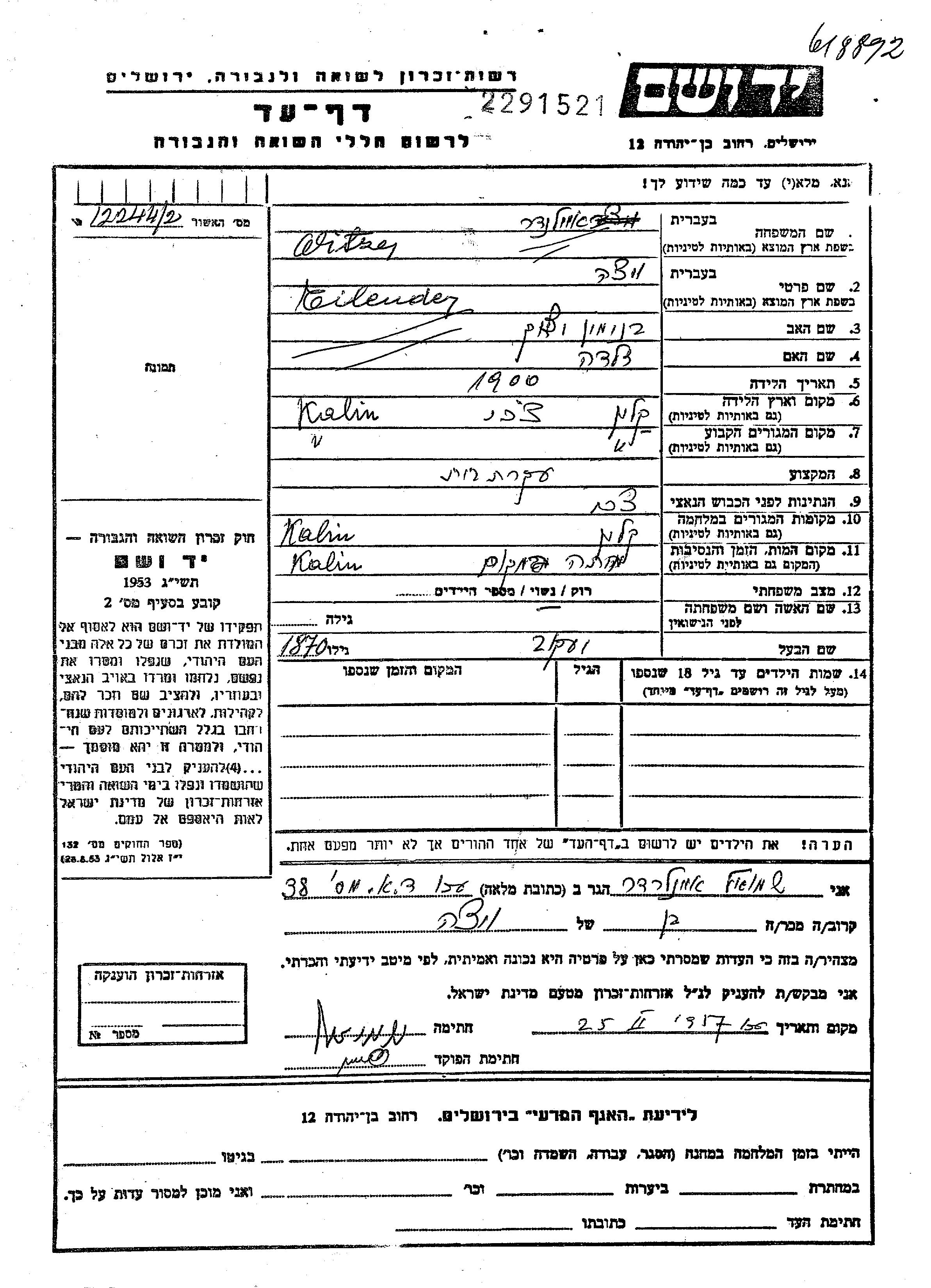 Поиск подателя Листа свидетельских показаний. Поиск по любому имени, включая уменьшительное или прозвище