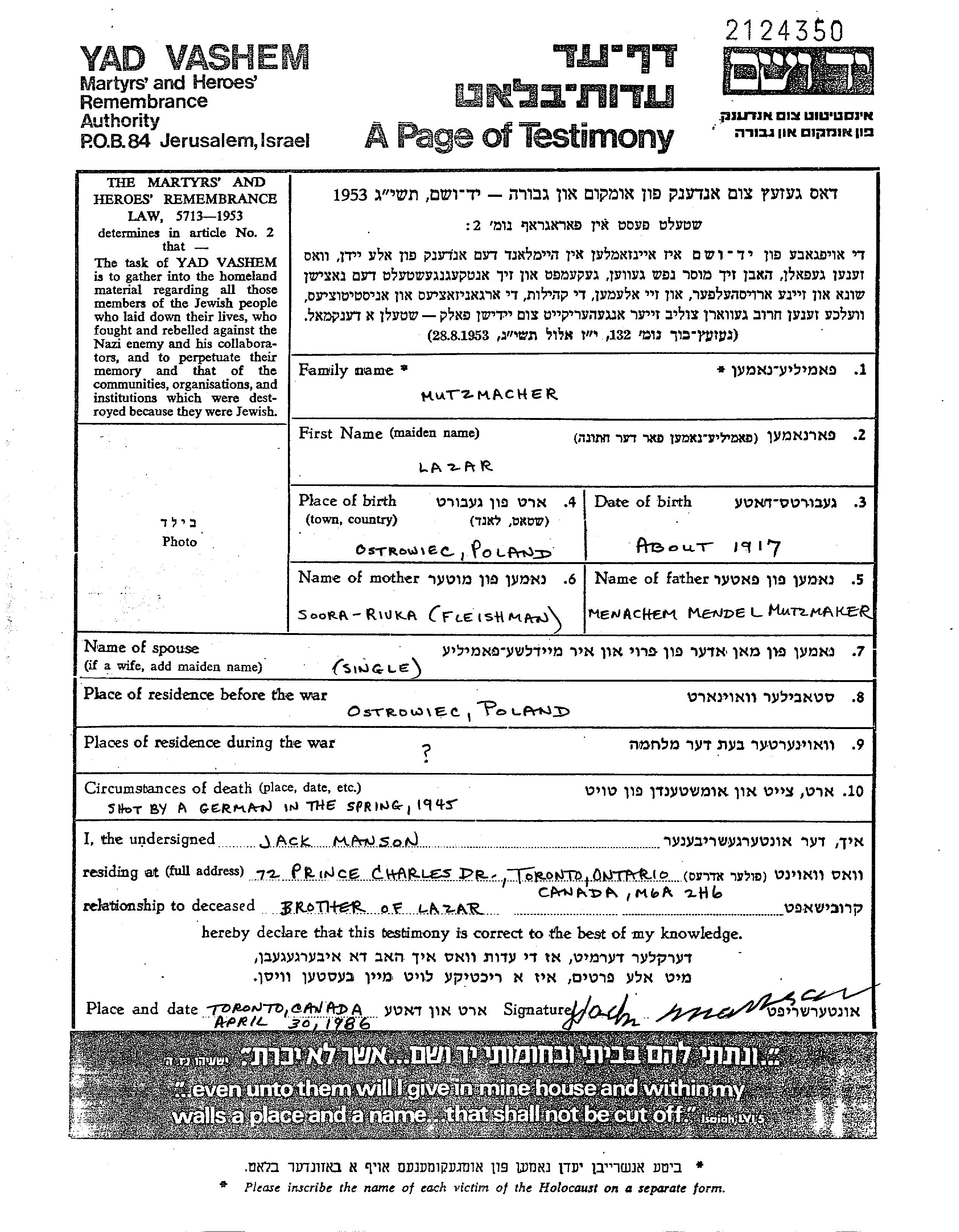 Во время Шоа евреев уничтожали разными способами: газовые камеры, расстрелы, их заживо хоронили или сжигали, непосильным принудительным трудом, голодом, эпидемиями, отсутствием минимальных гигиенических условий и медицинского обслуживания, и т.д. Некоторые евреи добровольно расстались со своей жизнью, чтобы избежать ареста и дальнейших преследований или чтобы покончить с безысходностью и бесконечными страданиями. Десятки тысяч еврейских солдат, служивших в Советской армии и попавших в плен, , были отобраны как евреи и убиты. Многие были зарегистрированы как «пропавшие без вести».