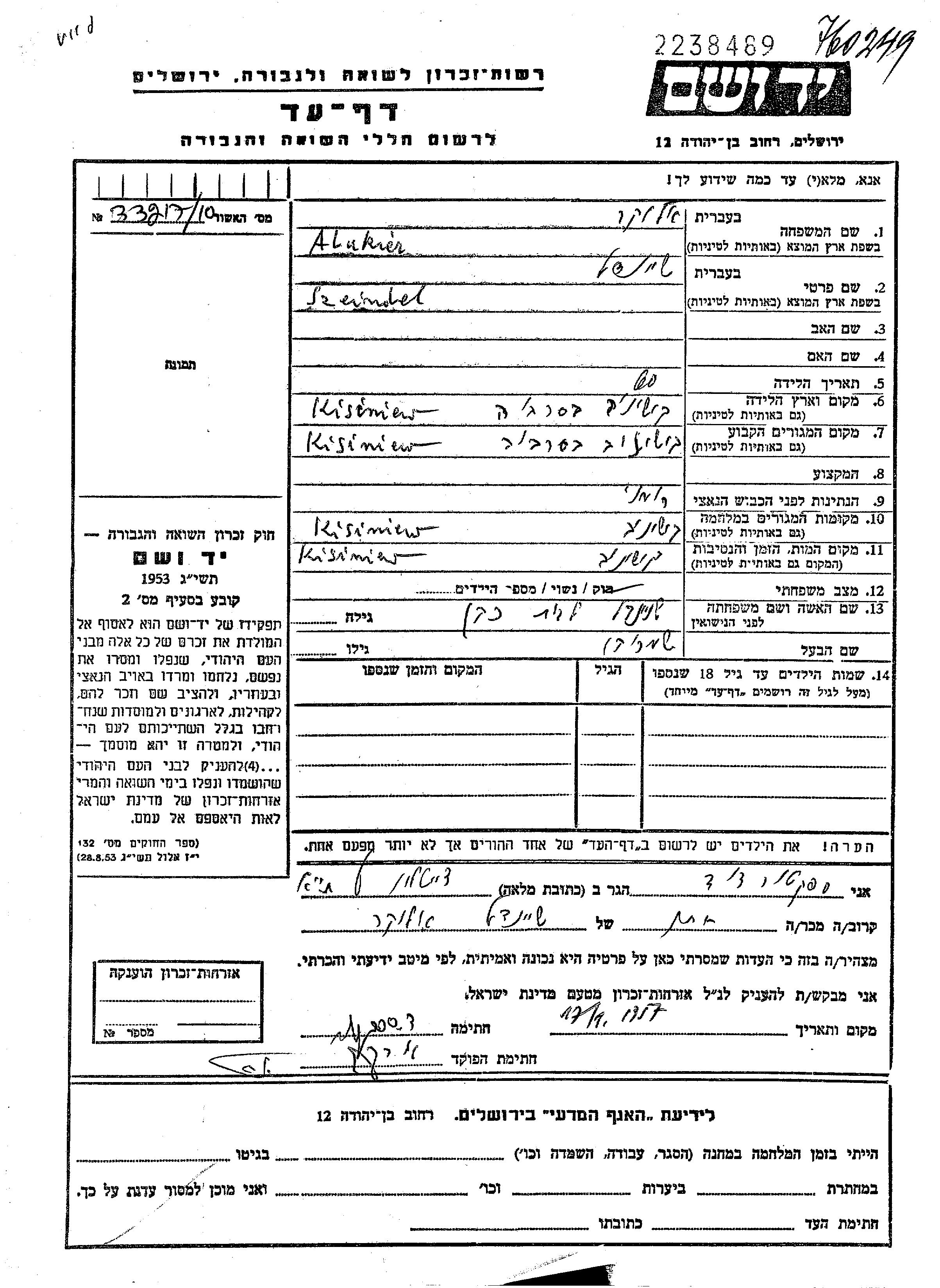 Яд Вашем - Листы свидетельских показаний Мемориального фонда