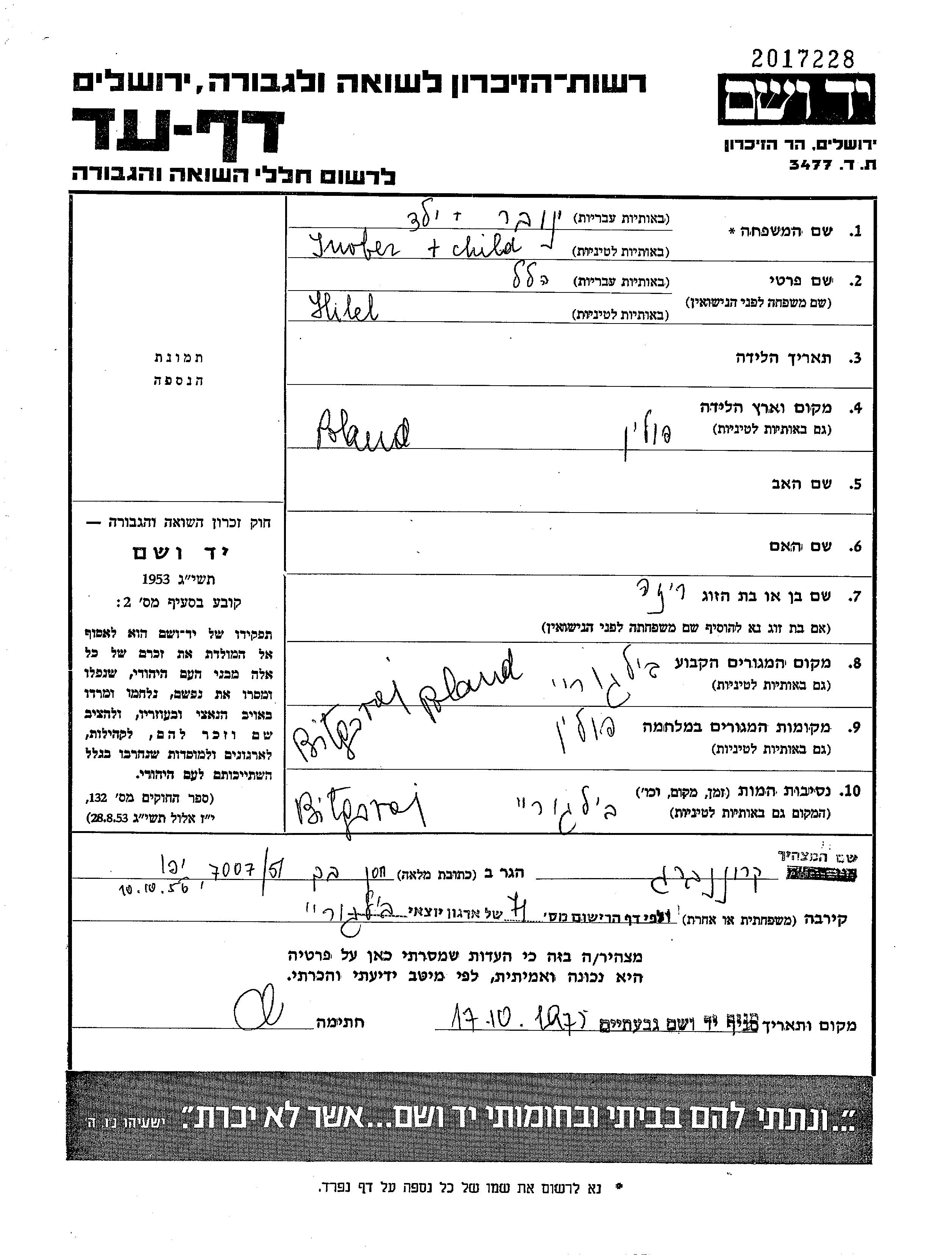 Яд Вашем - Листы свидетельских показаний Мемориального фонда