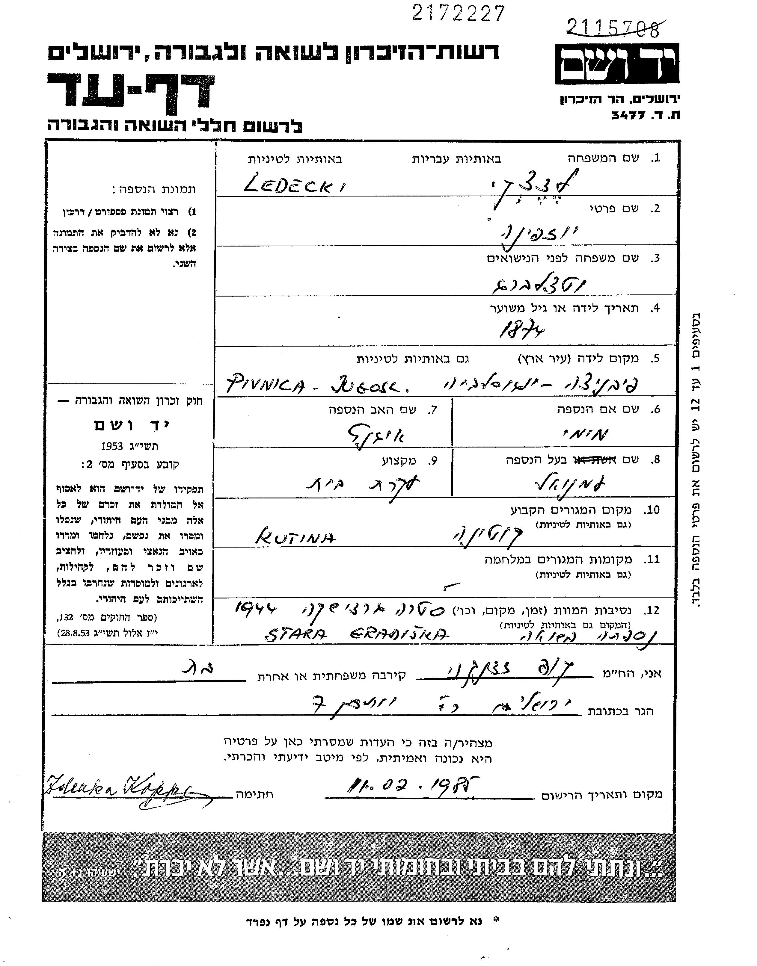 Яд Вашем - Листы свидетельских показаний Мемориального фонда
