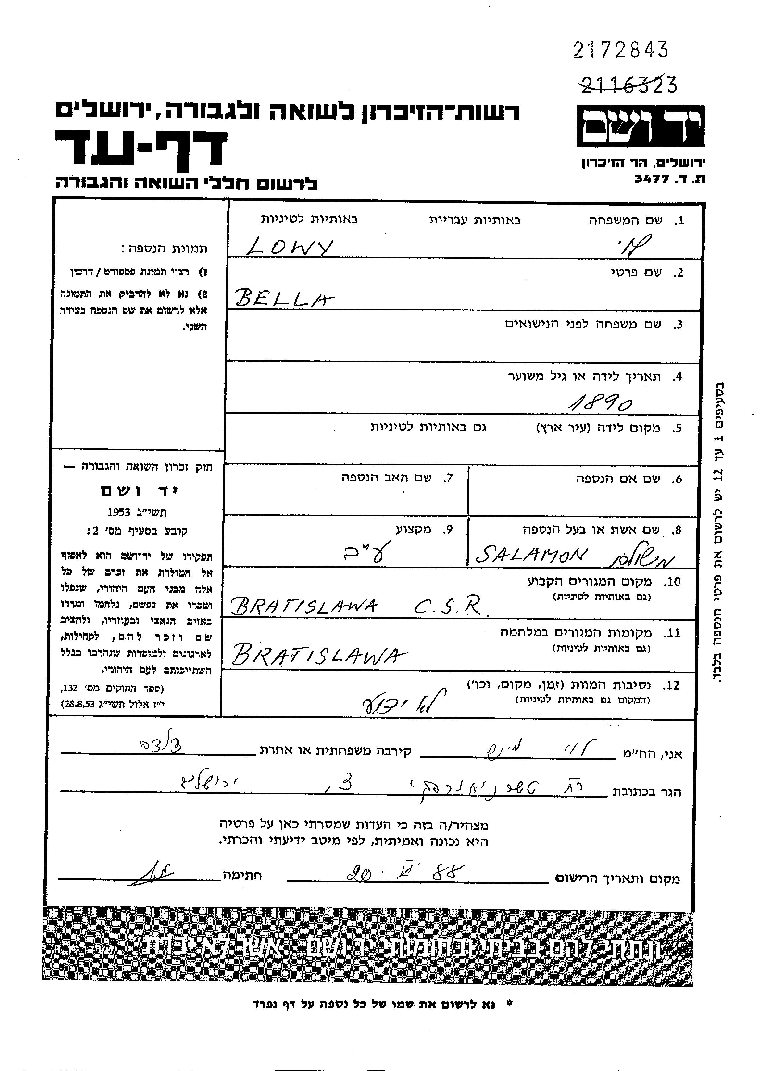 Поиск подателя Листа свидетельских показаний. Поиск по любому имени, включая уменьшительное или прозвище