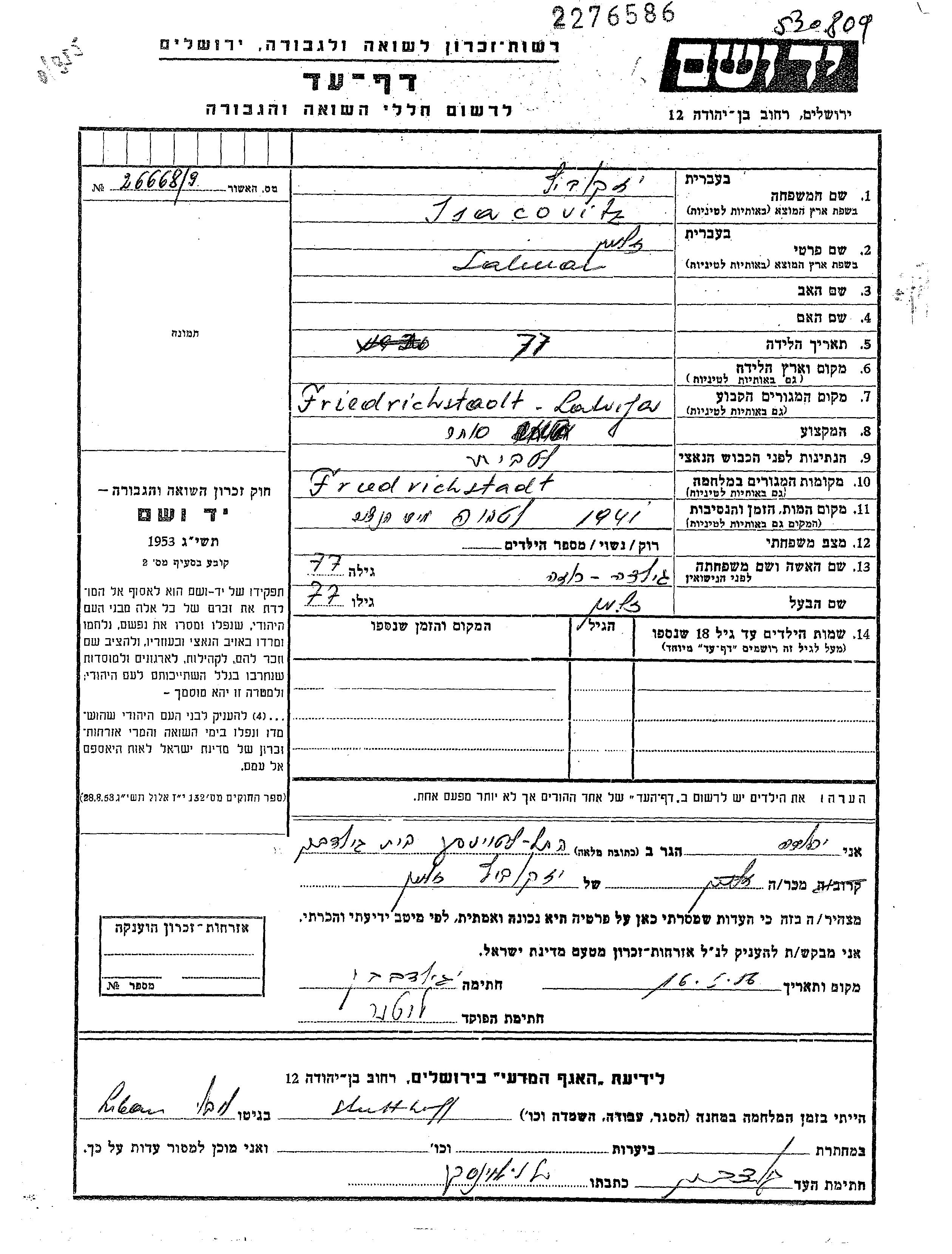 Яд Вашем - Листы свидетельских показаний Мемориального фонда